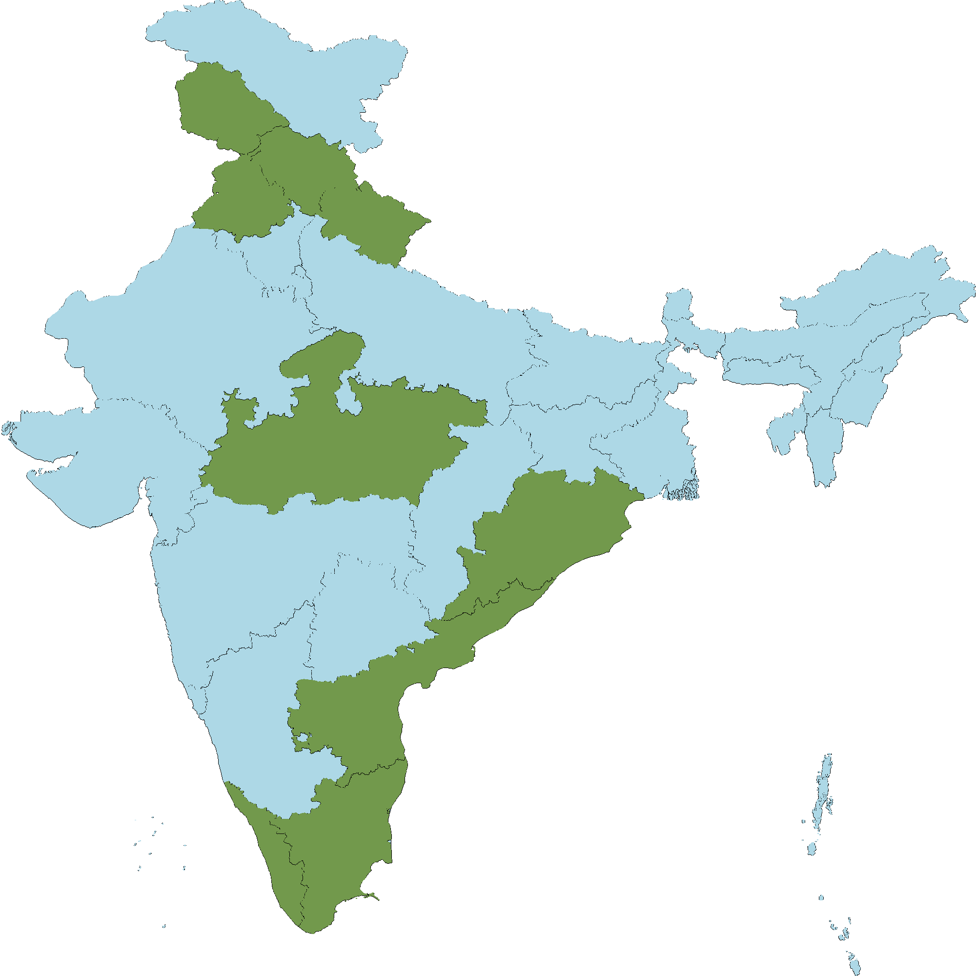 - Andhra Pradesh : Chittoor district, Kurnool district, East Godavari district, Kadapa district