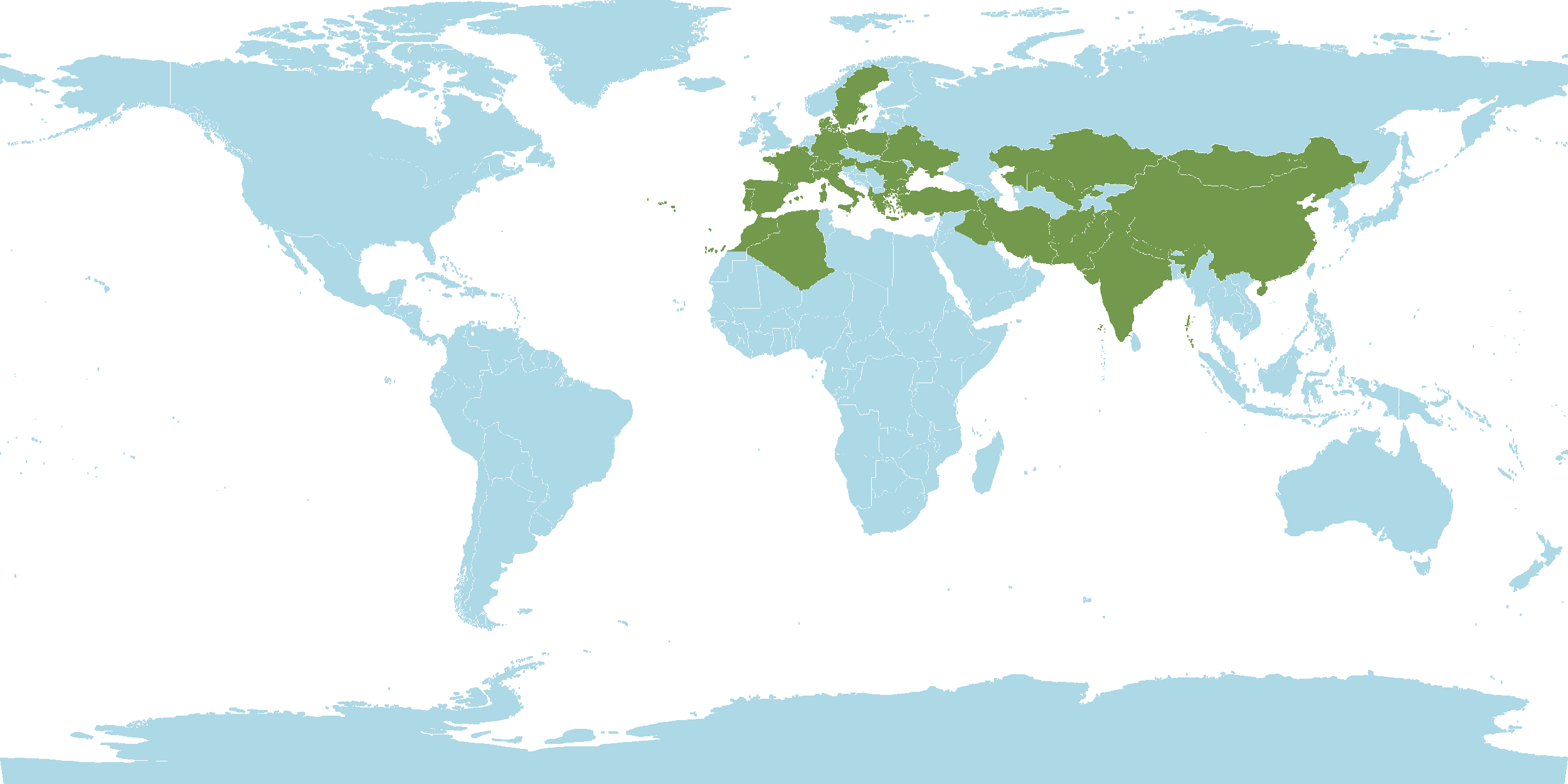 Native : Afghanistan, Albania, Algeria, Altay, Austria, Baltic States, Belarus, Belgium, Bulgaria, Central European Russia, China, Corse, Czechoslovakia, Denmark, East Aegean Islands, East European Russia, France, Germany, Greece, Hungary, India, Iran, Iraq, Italy  Exotic/Native : Native  World Distribution : Afghanistan, Albania, Algeria, Altay, Austria, Baltic States, Belarus, Belgium, Bulgaria, Central European Russia, China, Corse, Czechoslovakia, Denmark, East Aegean Islands, East European Russia, France, Germany, Greece, Hungary, India, Iran, Iraq, Italy, Kazakhstan, Kirgizstan, Korea, Krasnoyarsk, Kriti, Krym, Lebanon-Syria, Mongolia, Morocco, Nepal, North Caucasus, North European Russia, Northwest European Russia, Pakistan, Palestine, Poland, Portugal, Romania, Sardegna, Sicilia, South European Russia, Spain, Sweden, Switzerland, Tadzhikistan, Transcaucasus, Turkey, Turkey-in-Europe, Tuva, Ukraine, Uzbekistan, West Siberia, Xinjiang, Yugoslavia  Literature :