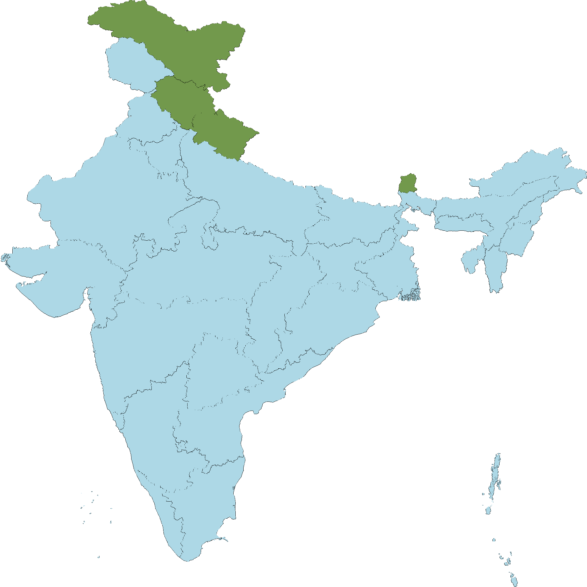 • Sikkim : North Sikkim (Mangan) district,East Sikkim (Gangtok) district,West Sikkim (Geyzing) district