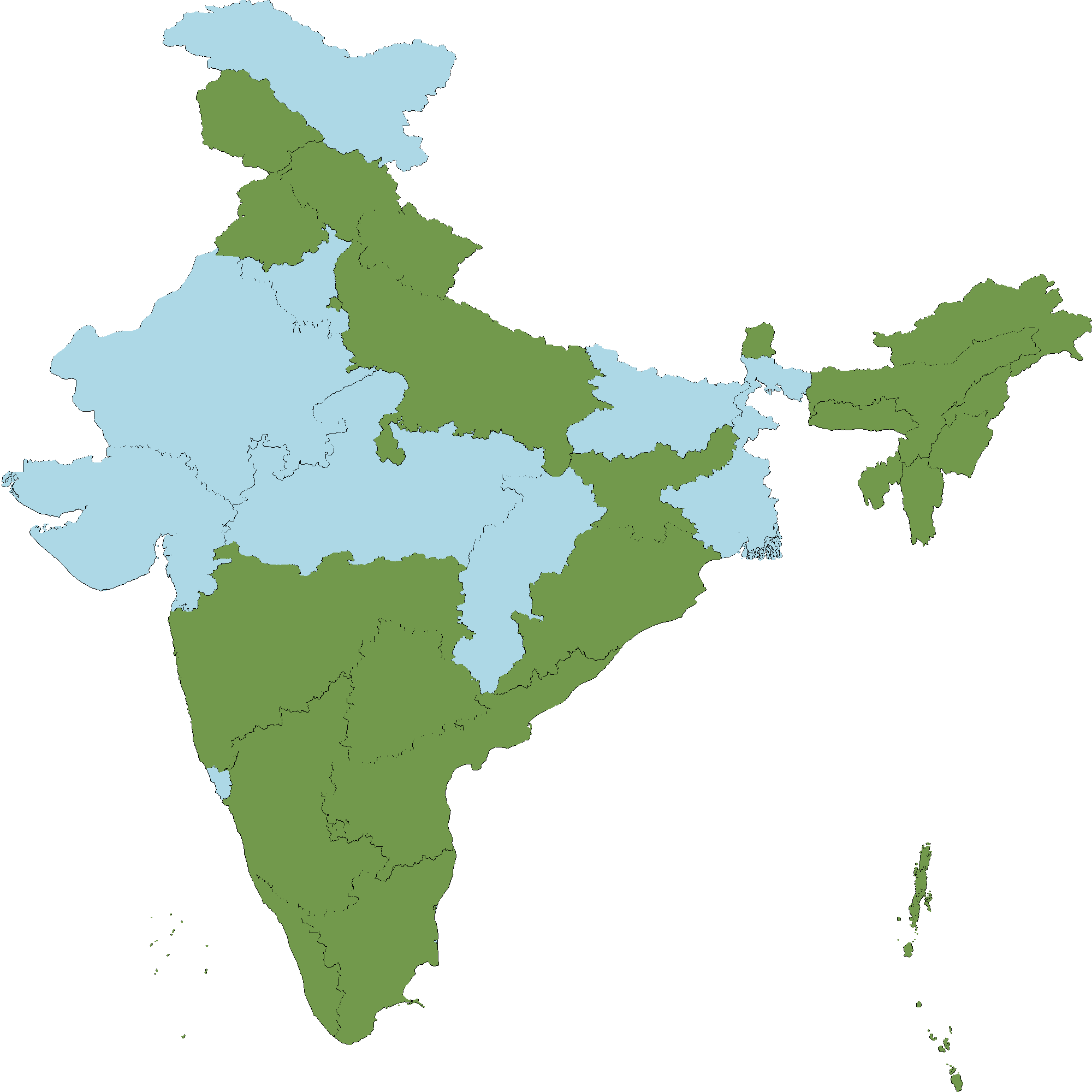 - Andhra Pradesh : Anantapur district, Chittoor district, Kadapa district, East Godavari district, Guntur district, Krishna district, Kurnool district, Nellore district, Prakasam district, Srikakulam district, Vishakapatnam district, Vizianagaram district, West Godavari district