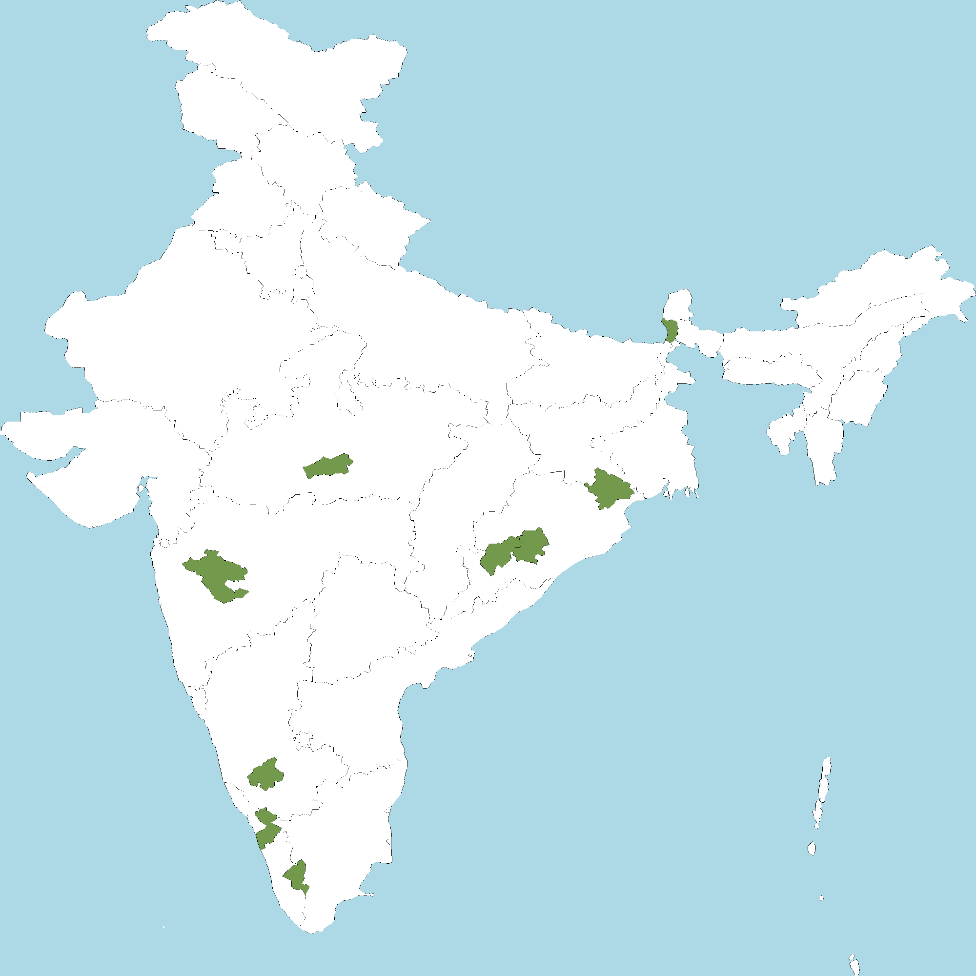 - Kerala : Wayanad district, Malappuram district, Idukki district