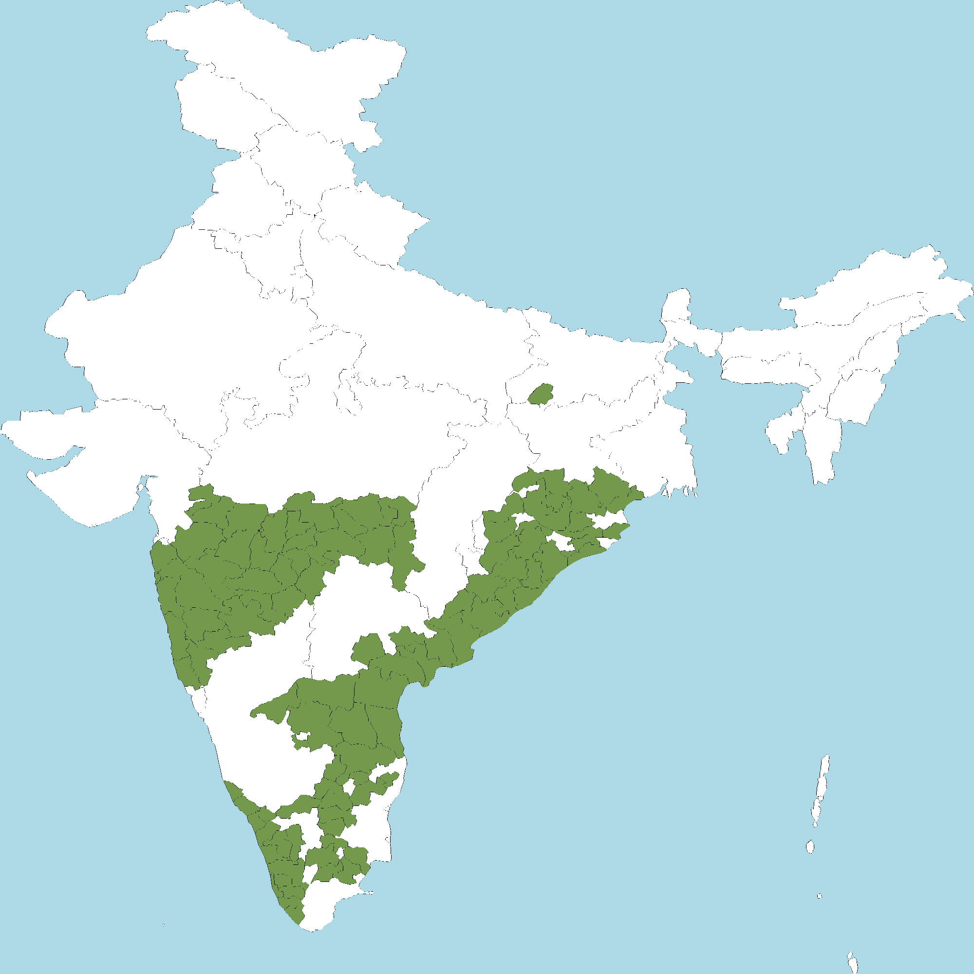 - Andhra Pradesh : Anantapur district, Chittoor district, Y.S.R. Kadapa district, East Godavari district, Guntur district, Krishna district, Kurnool district, S.P.S. Nellore district, Prakasam district, Srikakulam district, Visakhapatnam district, Vizianagaram district, West Godavari district