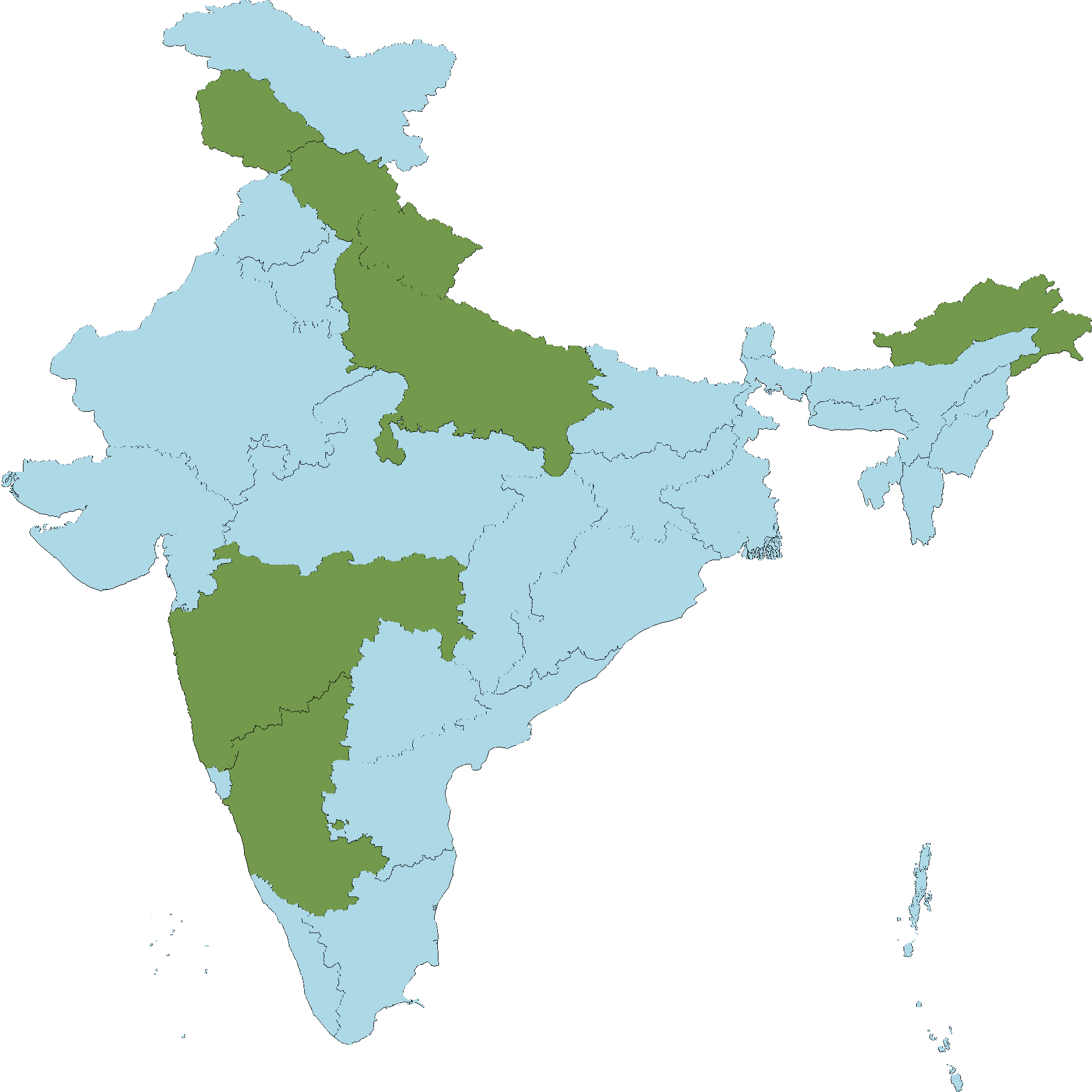 - Karnataka : Hassan district, Tumakuru district, Davanagare district, Mysuru district