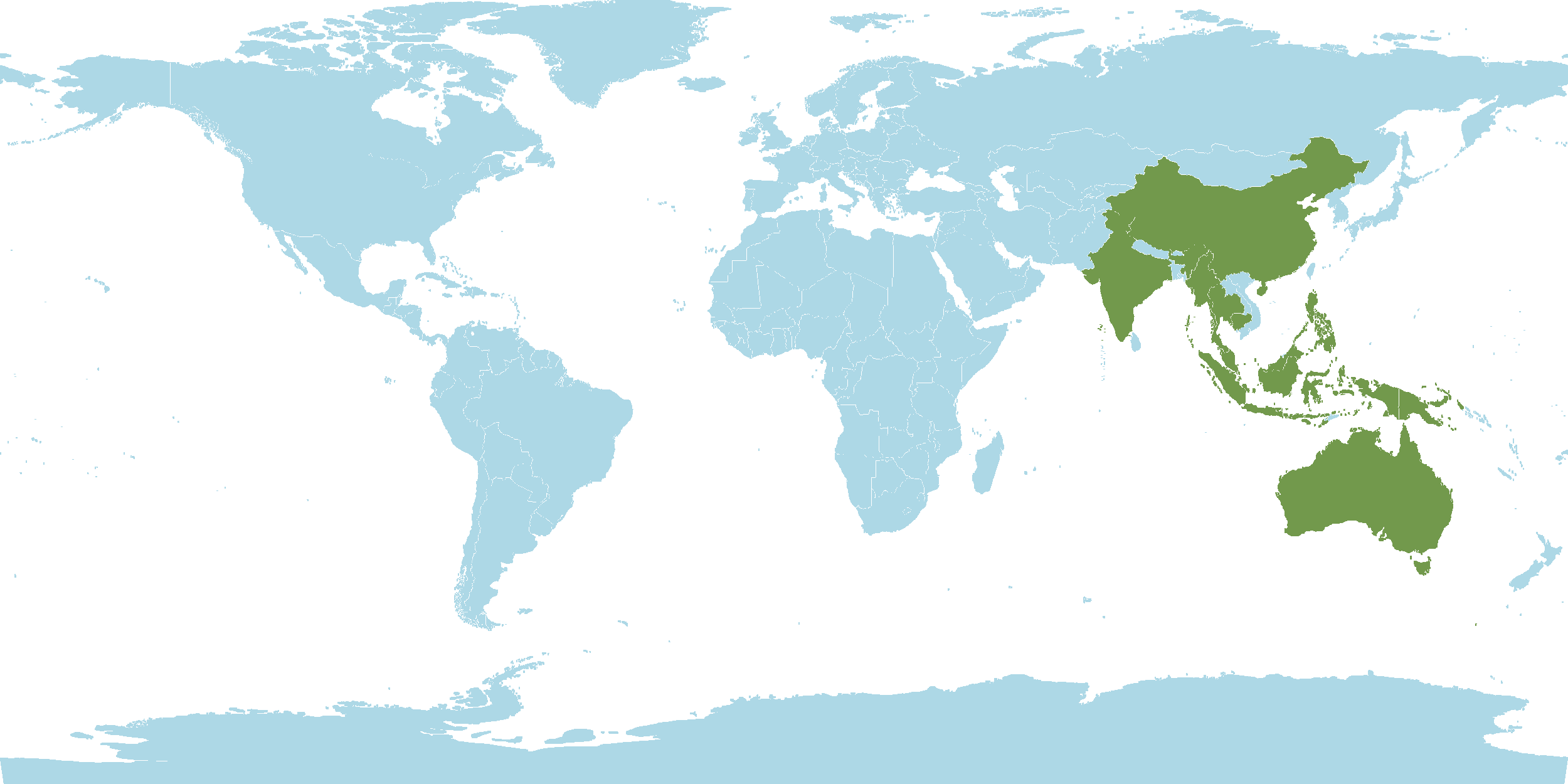- World Distribution : India, Australia, Cambodia, China, Indonesia, Lao People's Democratic Republic, Malaysia, Myanmar, Papua New Guinea, Philippines, Singapore, Thailand, Vienam