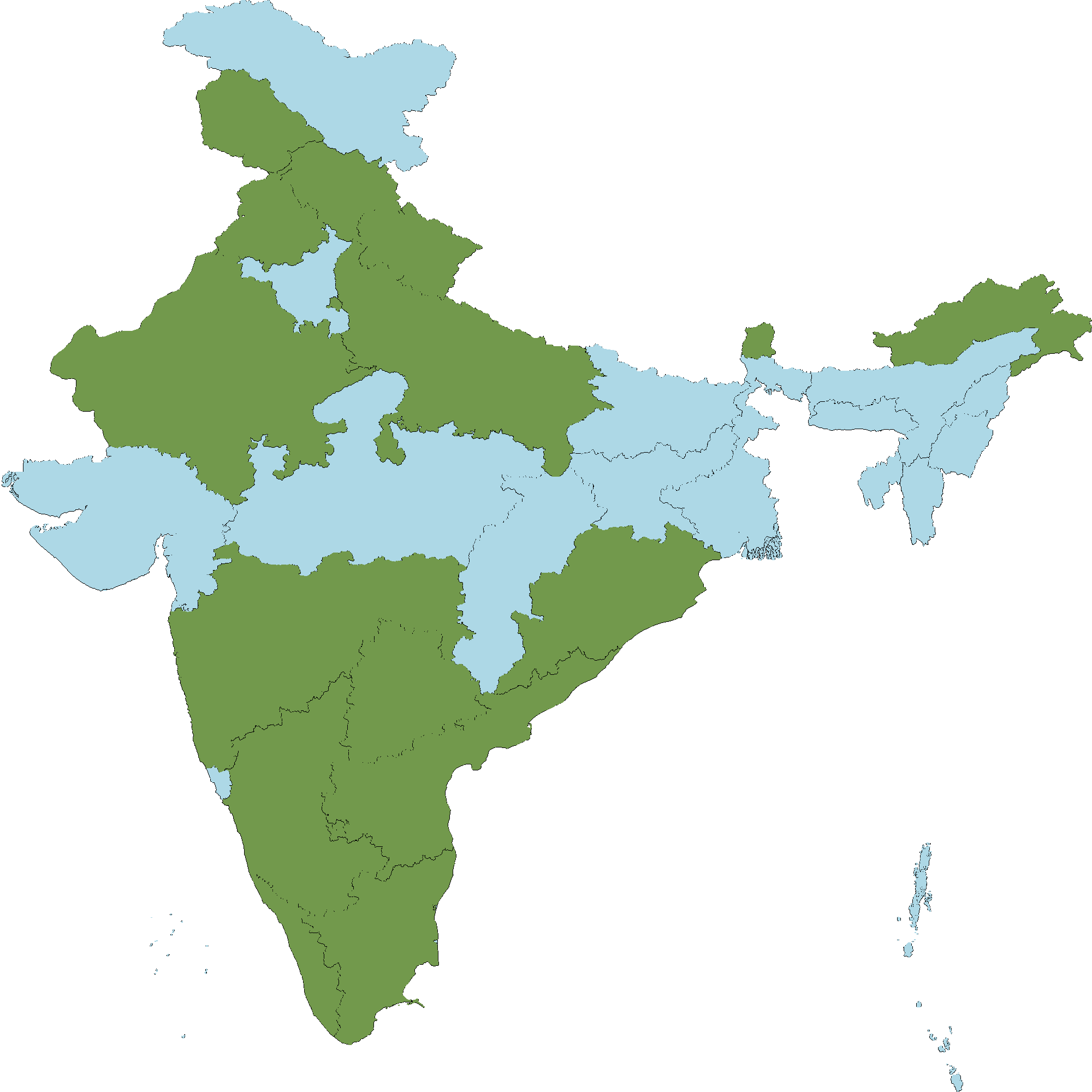 - Andhra Pradesh : Anantapur district, Chittoor district, Kadapa district, East Godavari district, Guntur district, Krishna district, Kurnool district, Nellore district, Prakasam district, Srikakulam district, Vishakapatnam district, Vizianagaram district, West Godavari district