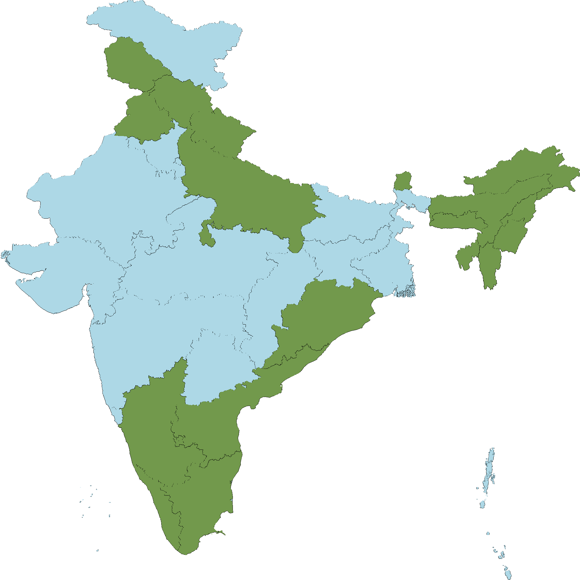 - Kerala : Kannur district, Wayanad district, Malappuram district, Palakkad district