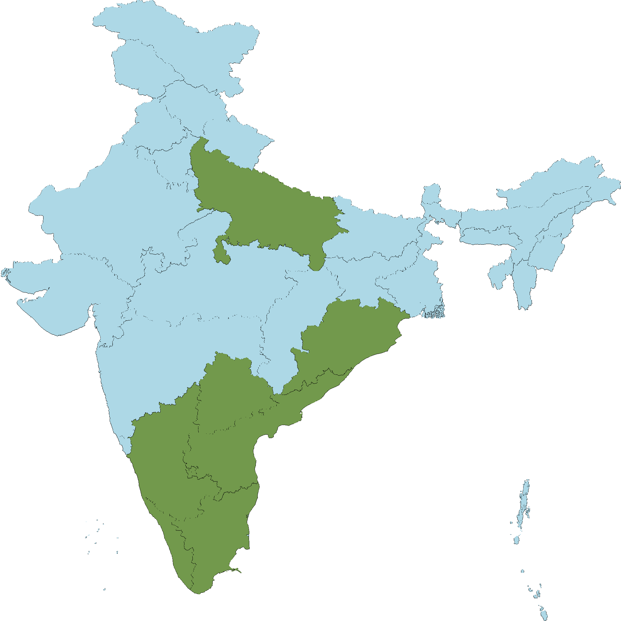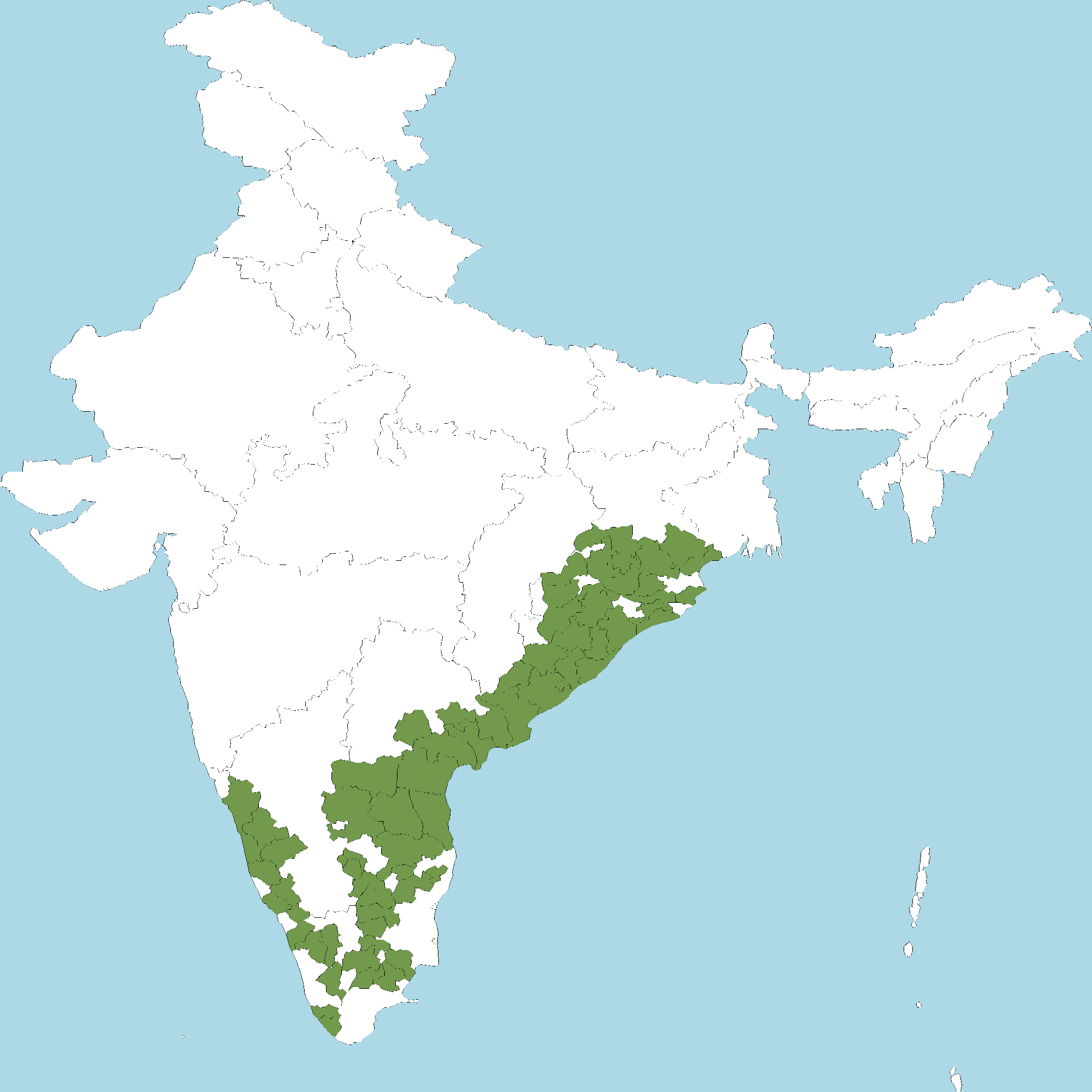 - Andhra Pradesh : Anantapur district, Chittoor district, Y.S.R. Kadapa district, East Godavari district, Guntur district, Krishna district, Kurnool district, S.P.S. Nellore district, Prakasam district, Srikakulam district, Visakhapatnam district, Vizianagaram district, West Godavari district