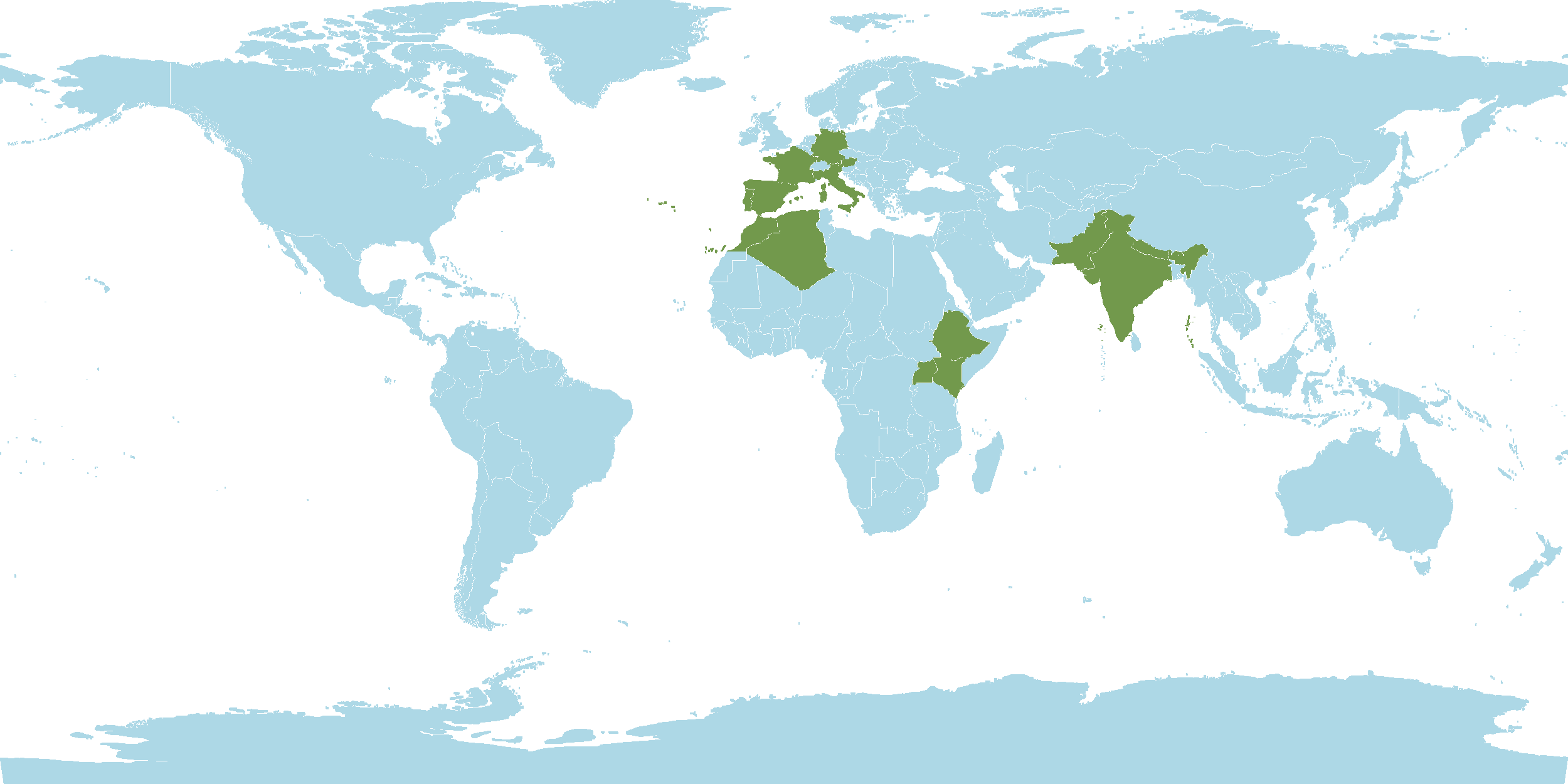 - Native : Algeria, Austria, Bhutan, Ethiopia, France, Germany, India, Italy, Kenya, Morocco, Nepal, Pakistan, Portugal, Spain, Tibet, Uganda, Xinjiang, Yugoslavia