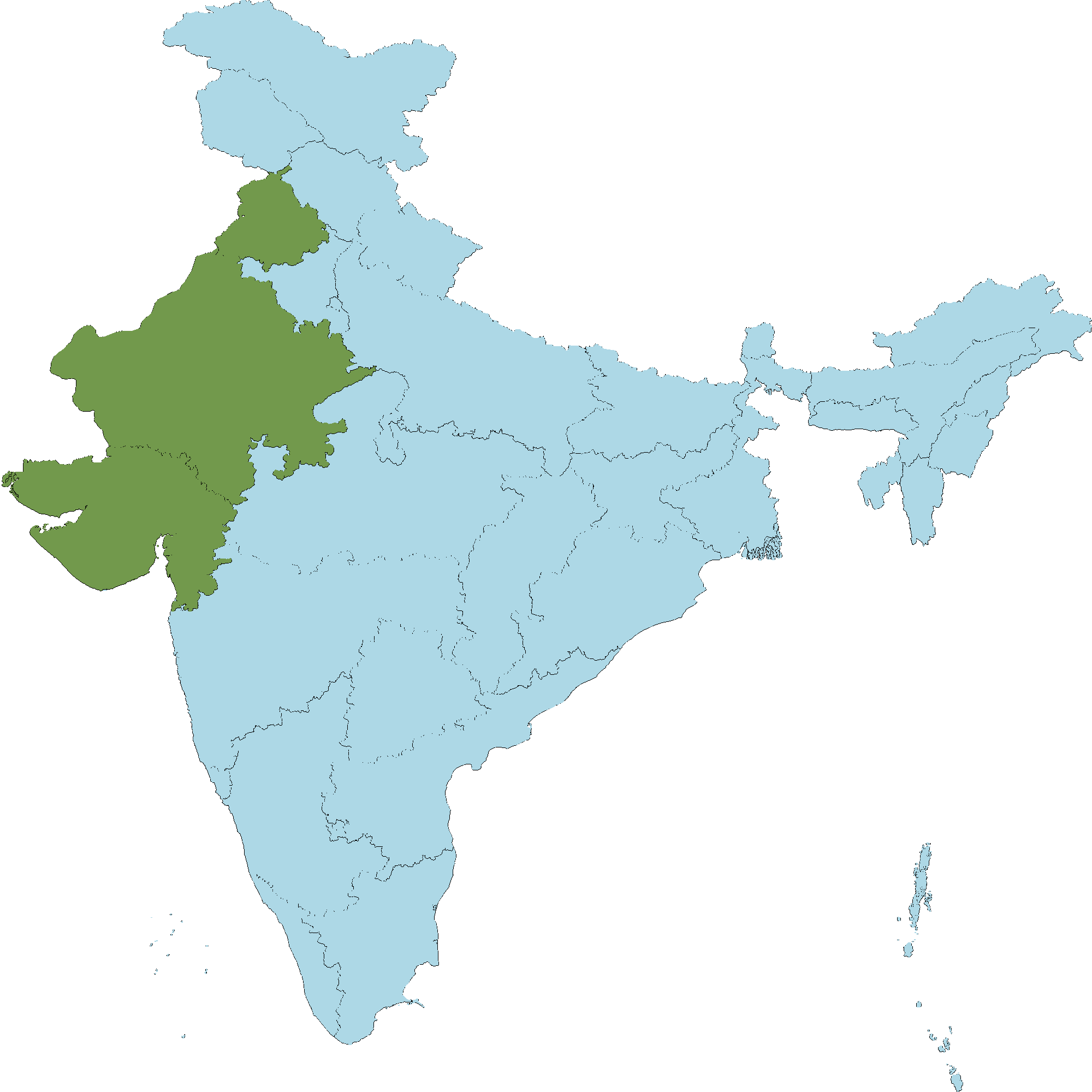 • Rajasthan : Jaisalmer district, Barmer district, Bikaner district, Jodhpur district