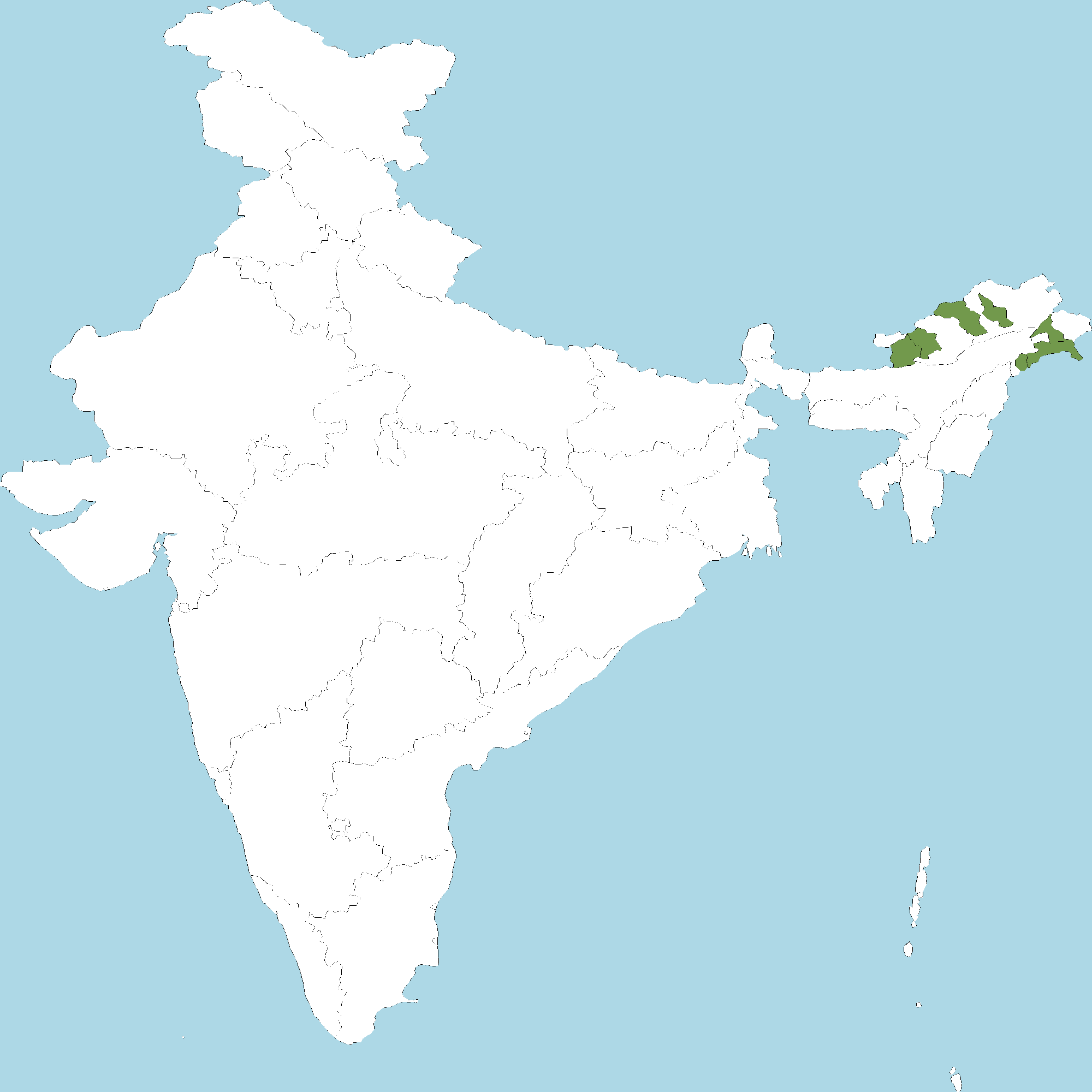 • Arunachal Pradesh : Changlang district, West Kameng district, East Kameng district, Lohit district, Siang district, Upper Subansiri district, Tirap district