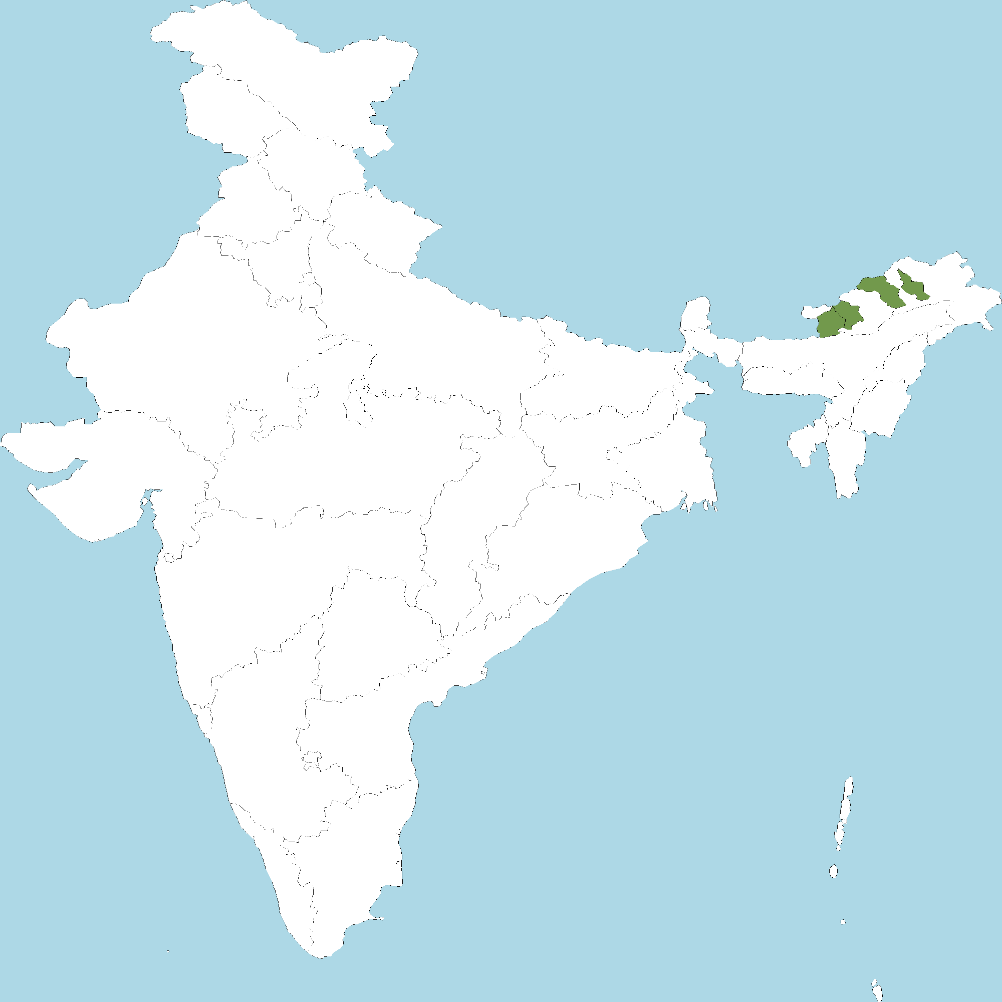 - Arunachal Pradesh : West Kameng district, East Kameng district, Siang district, Upper Subansiri district