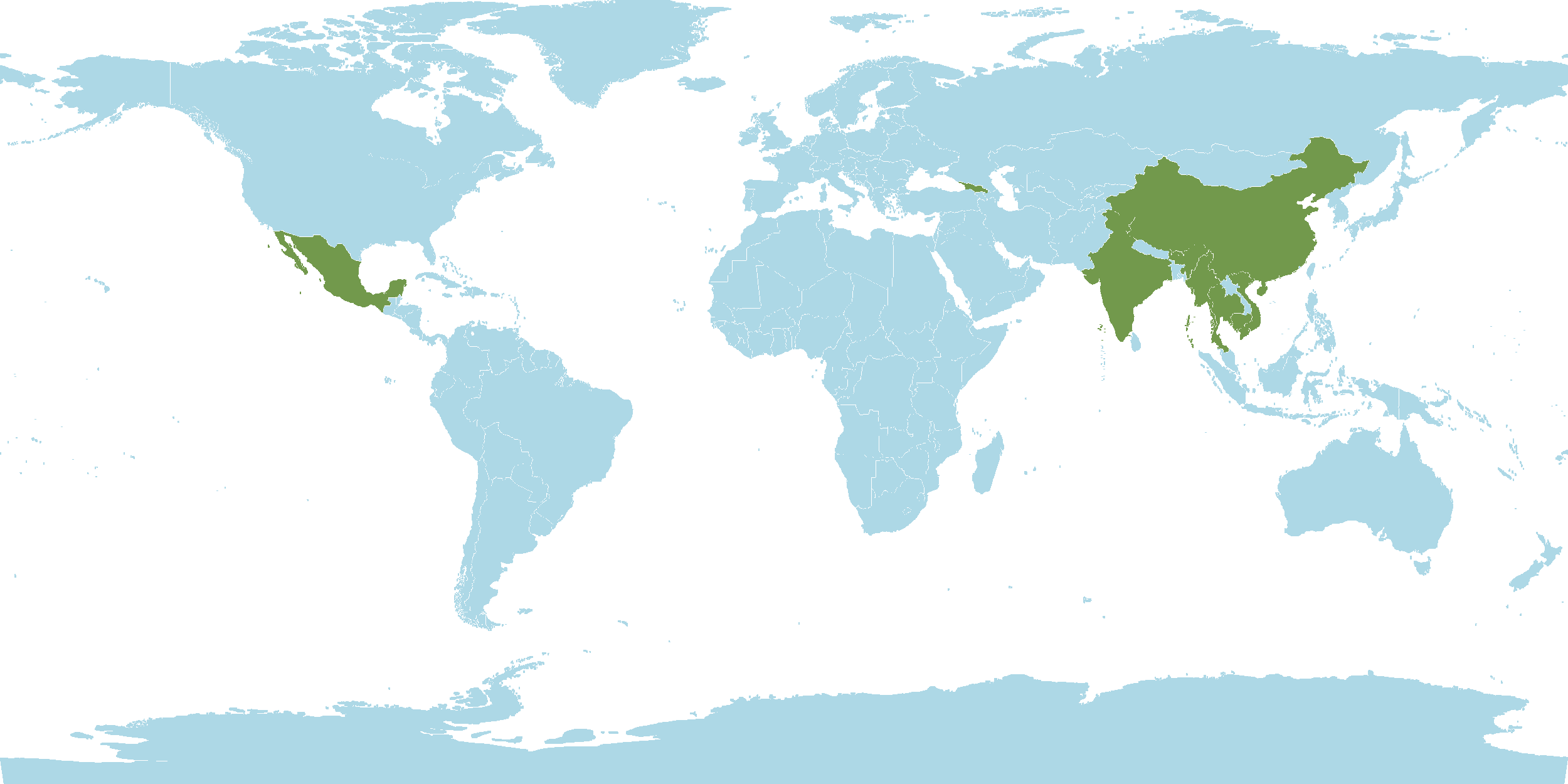 - World Distribution : Alabama, Arizona, Arkansas, Bhutan, Cambodia, China, Delaware, District of Columbia, Florida, Georgia, Illinois, India, Indiana, Iowa, Kansas, Kentucky, Louisiana, Maine, Maryland, Mexico, Mississippi, Myanmar, Nebraska, New Jersey, New York, North Carolina, Oklahoma, South Dakota, Tennessee, Texas, Thailand, Vietnam, Virginia, West Virginia, Wisconsin