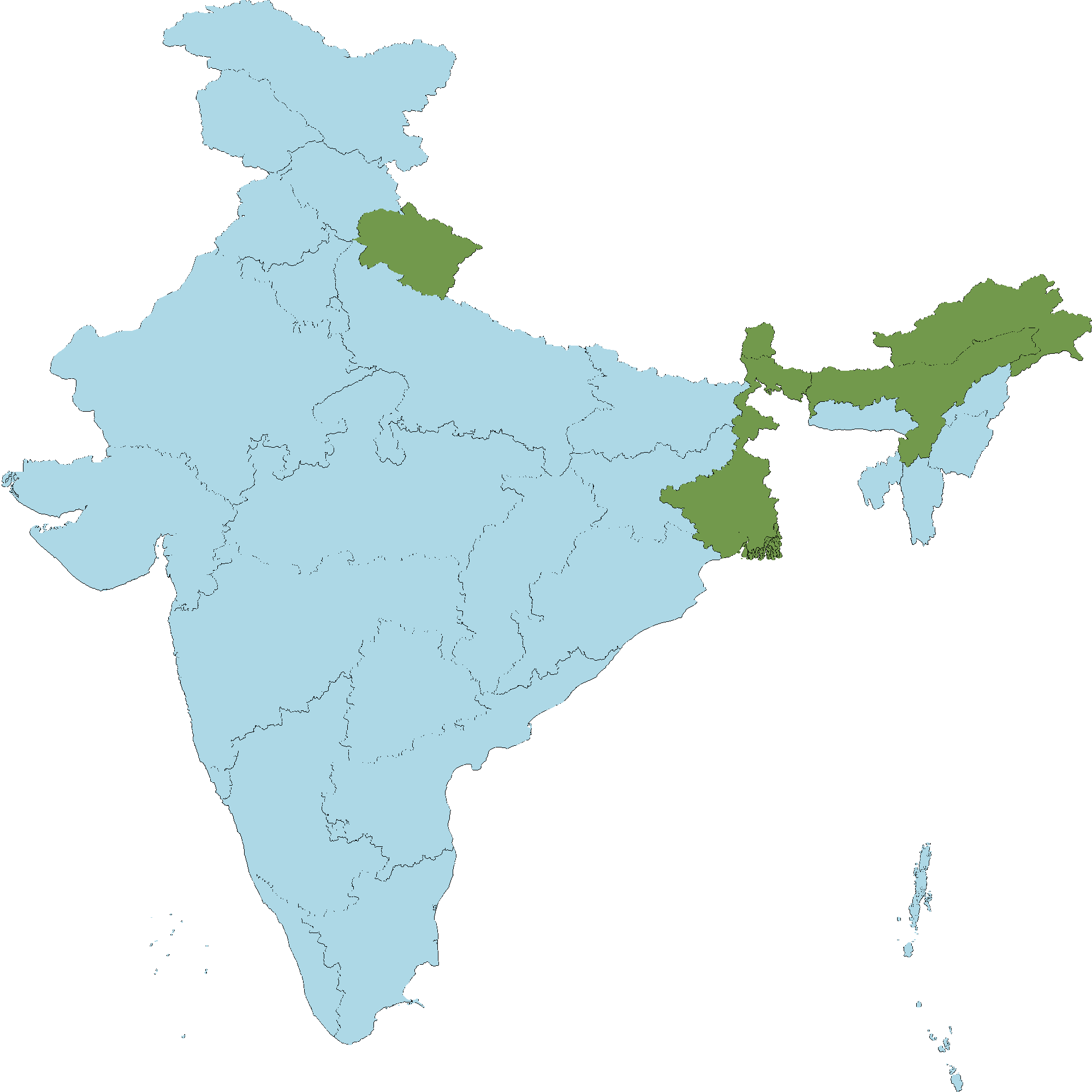 - Arunachal Pradesh : Kameng, Siang, Subansiri, Tirap