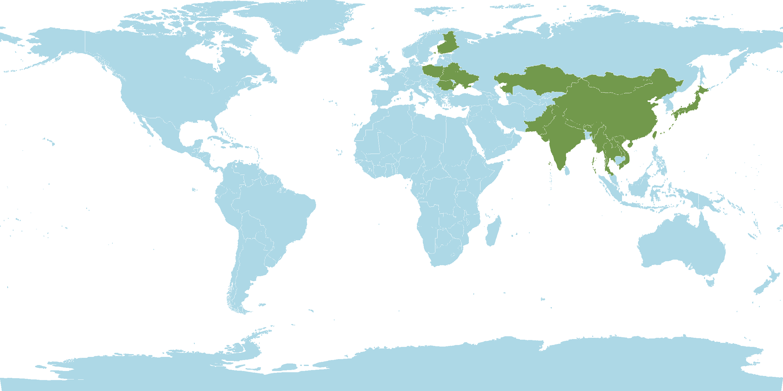 - World Distribution : Altay, India, Baltic States, Belarus, Central European Rus, China, East European Russia, Bhutan, Finland, Hainan, Inner Mongolia, Irkutsk, Japan, Jawa, Kazakhstan, Korea, Krasnoyarsk, Laos, Manchuria, Mongolia, Myanmar, Nansei-shoto, Nepal, North Caucasus, North European Russi, Northwest European R, Pakistan, Poland, Primorye, Romania, South European Russi, Taiwan, Thailand, Tibet, Transcaucasus, Tuva, Ukraine, Vietnam, West Himalaya, West Siberia, Xinjiang, Yugoslavia