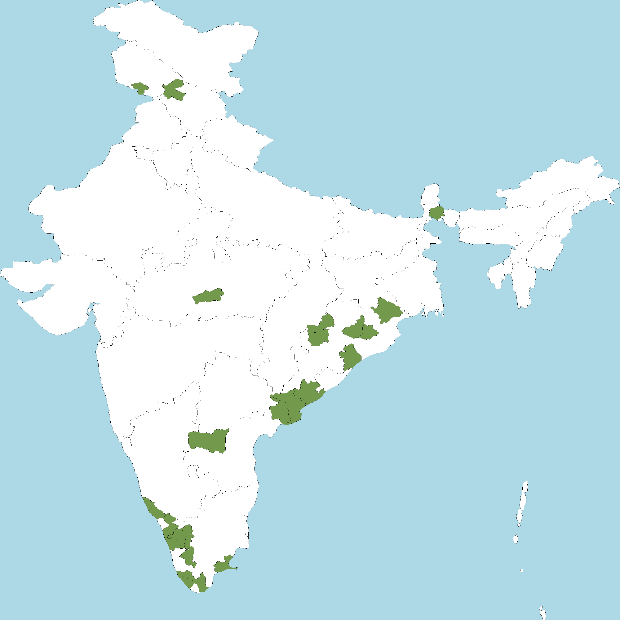 - Tamil Nadu : Coimbatore district, The Nilgiri district, Ramanathapuram district, Tirunelveli district