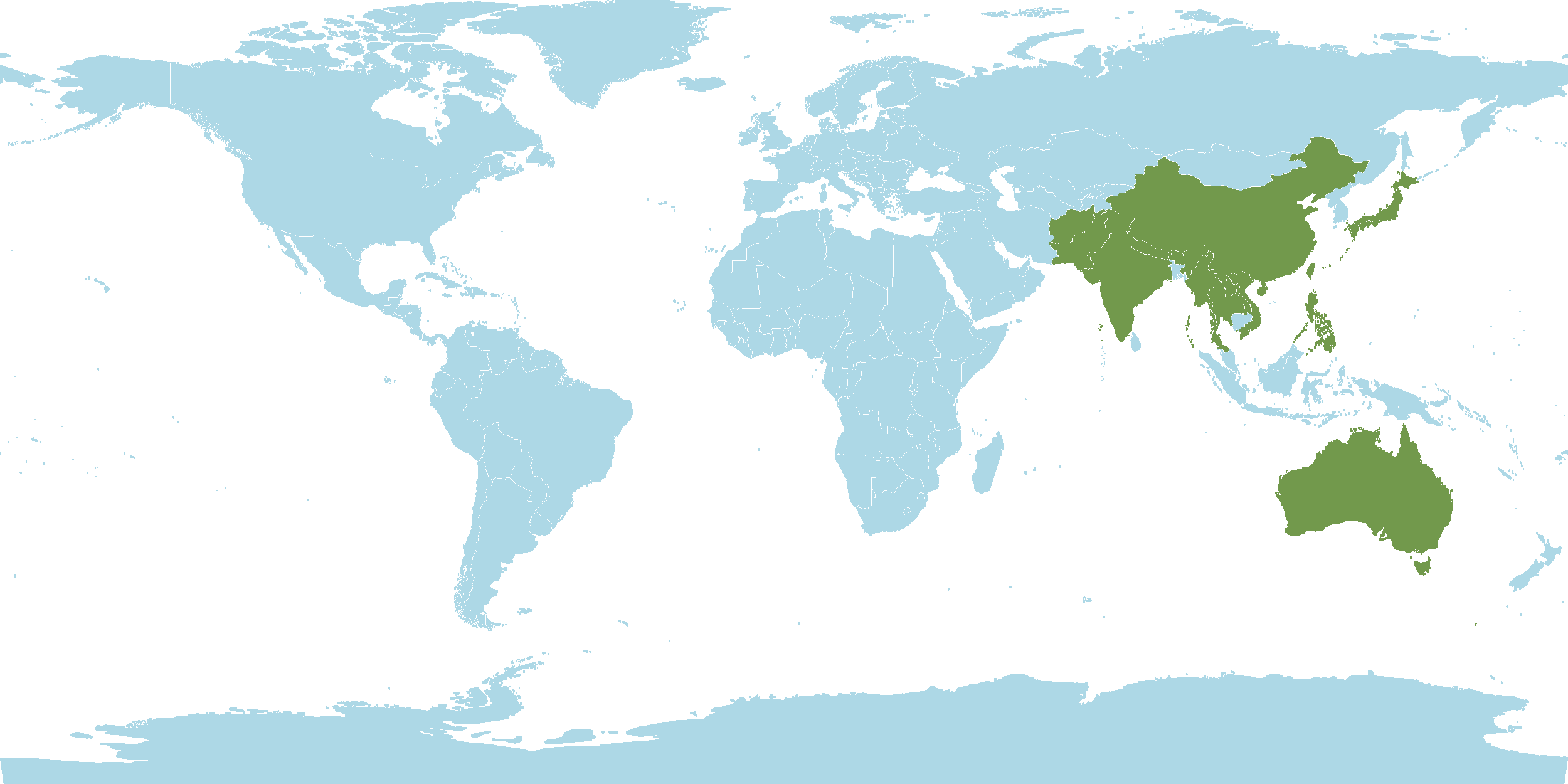 - World Distribution : Afghanistan, Australia, Bhutan, China, India, Japan, Jawa, Korea, Laos, Lesser Sunda Islands, Malaya, Myanmar, Nansei-shoto, Nepal, New Guinea, Pakistan, Philippines, Sumatera, Taiwan, Thailand, Tibet, Vietnam