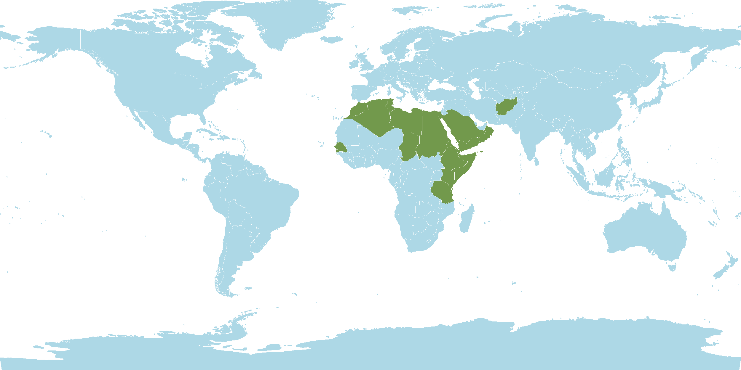 -  World Distribution : Afghanistan, Algeria, Chad, Djibouti, Egypt, Eritrea, Ethiopia, Kenya, Lebanon-Syria, Libya, Morocco, Oman, Palestine, Saudi Arabia, Senegal, Sinai, Socotra, Somalia, Sudan, Tanzania, Tunisia, Yemen