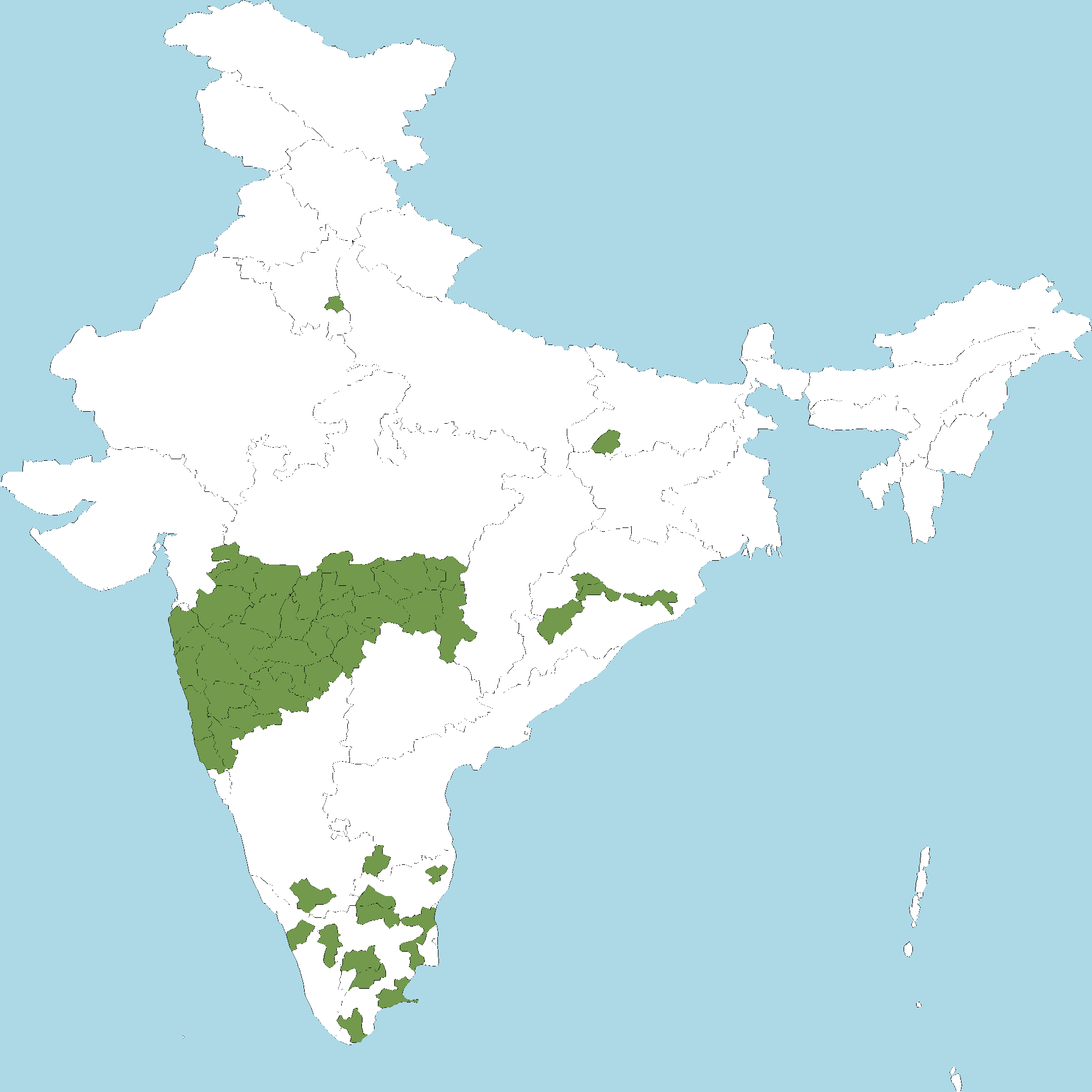 - Tamil Nadu : Dindigul district, Kancheepuram (Changalpattu-CGP) district, Coimbatore district, Dharmapuri district, Madurai district, Ramanathapuram district, Thanjavur district, Tirunelveli district, Salem district, Villipuram district, Cuddalore district, Tiruchirapalli district