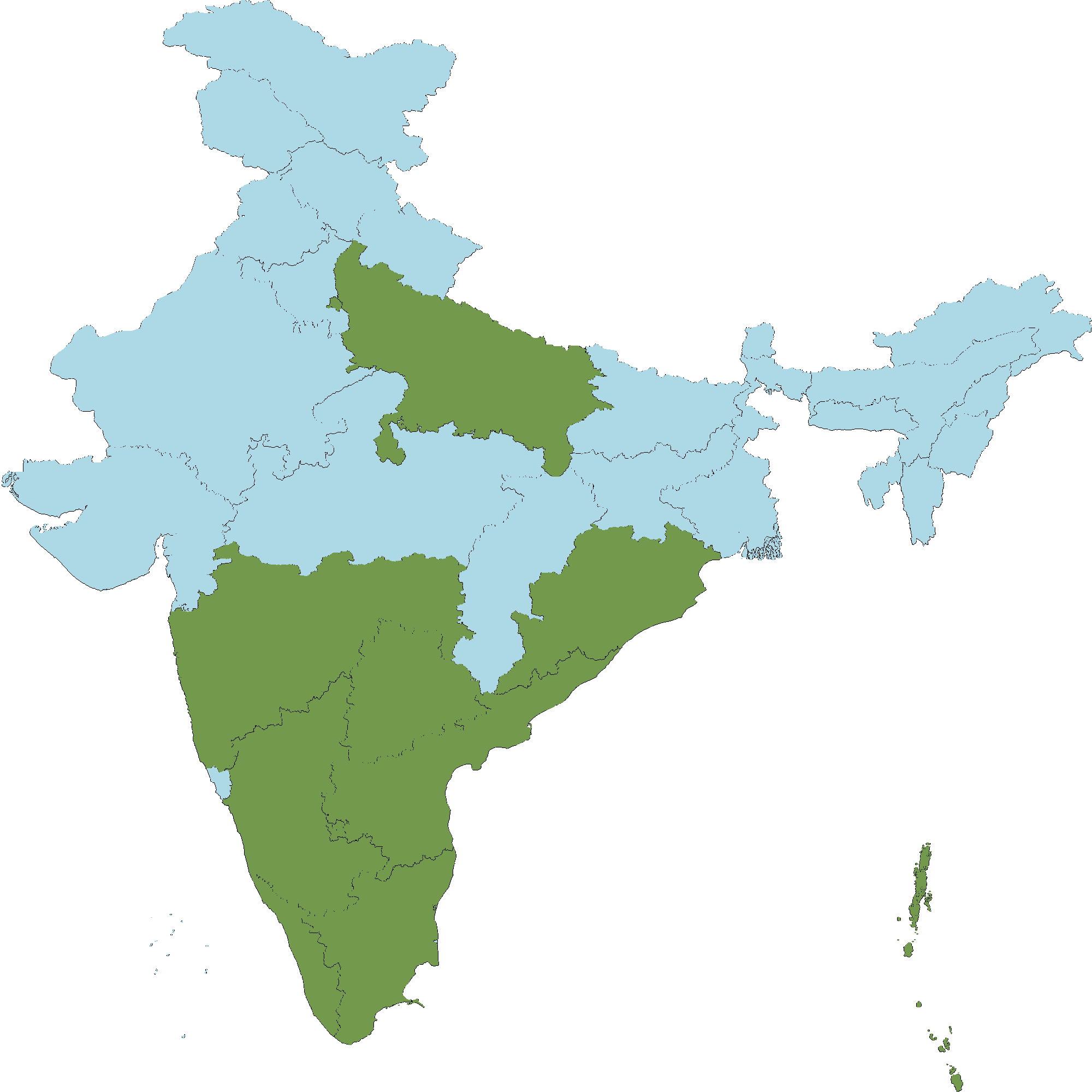 - Andhra Pradesh : Anantapur district, Chittoor district, Kadapa district, East Godavari district, Guntur district, Krishna district, Kurnool district, Nellore district, Prakasam district, Srikakulam district, Vishakapatnam district, Vizianagaram district, West Godavari district