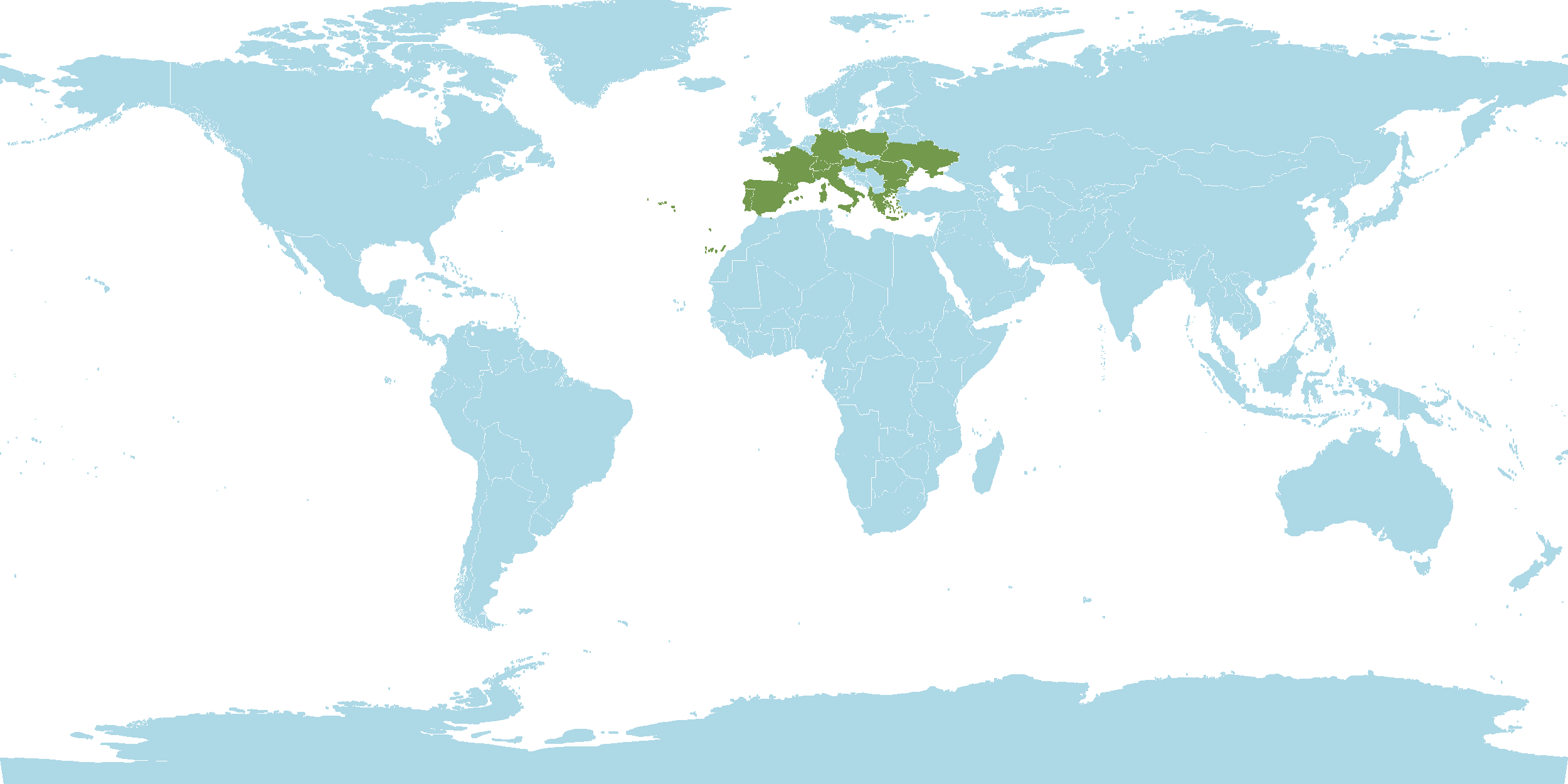 - Native : Albania, Austria, Bulgaria, Corse, Czechoslovakia, France, Germany, Greece, Hungary, Italy, Krym, North Caucasus, Poland, Portugal, Romania, Sicilia, Spain, Switzerland, Turkey-in-Europe, Ukraine, Yugoslavia
