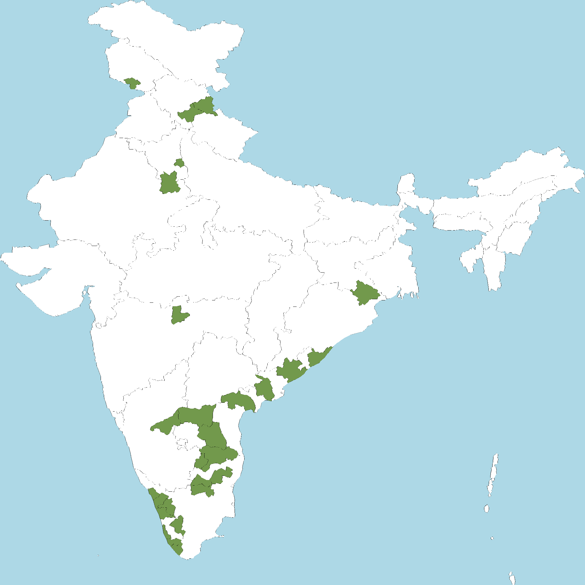 - Andhra Pradesh : Chittoor district, West Godavari district, Kurnool district, Y.S.R. Kadapa district, Visakhapatnam district, Srikakulam district, Guntur district