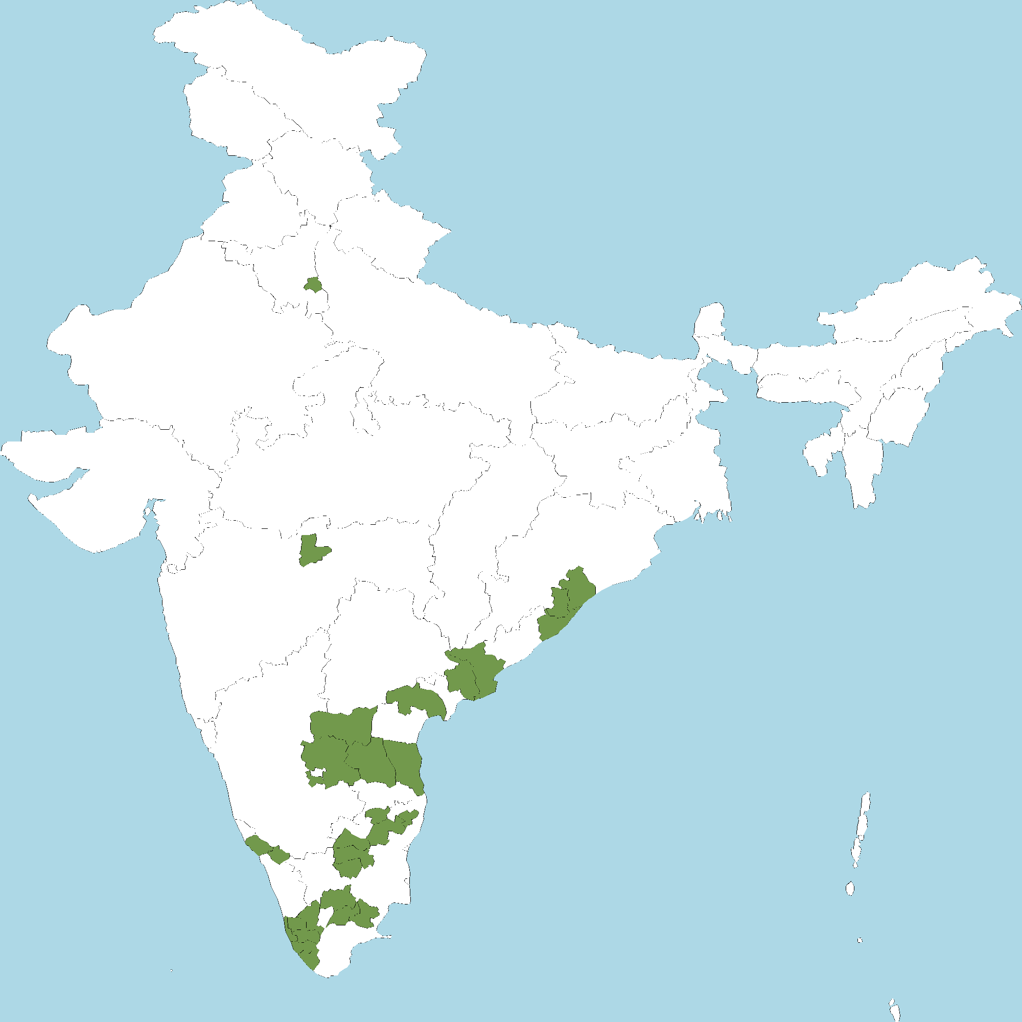 - Andhra Pradesh : West Godavari district, Srikakulam district, East Godavari district, Kurnool district, Y.S.R. Kadapa district, Anantapur district, Guntur district, S.P.S. Nellore district