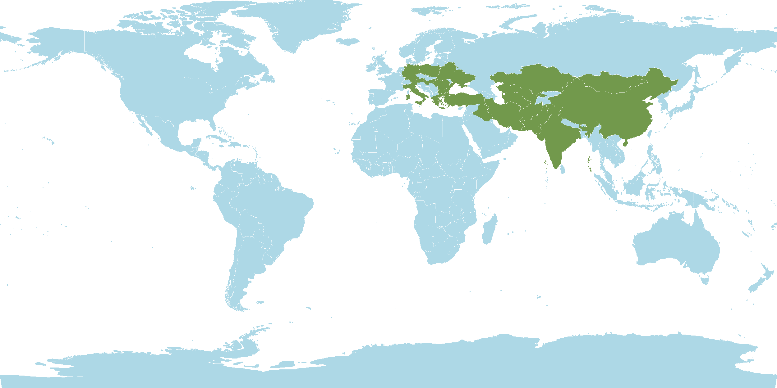 - World Distribution : Afghanistan, Altay, Austria, Belarus, Bulgaria, Buryatiya, Central European Russia, China, Chita, Czechoslovakia, East European Russia, Germany, Greece, Hungary, India, Iran, Iraq, Irkutsk, Italy, Kazakhstan, Kirgizstan, Krasnoyarsk, Krym, Lebanon-Syria, Mongolia, North Caucasus, Northwest European Russia, Pakistan, Poland, Romania, South European Russia, Tadzhikistan, Transcaucasus, Turkey, Turkey-in-Europe, Turkmenistan, Tuva, Ukraine, Uzbekistan, West Siberia, Xinjiang, Yugoslavia