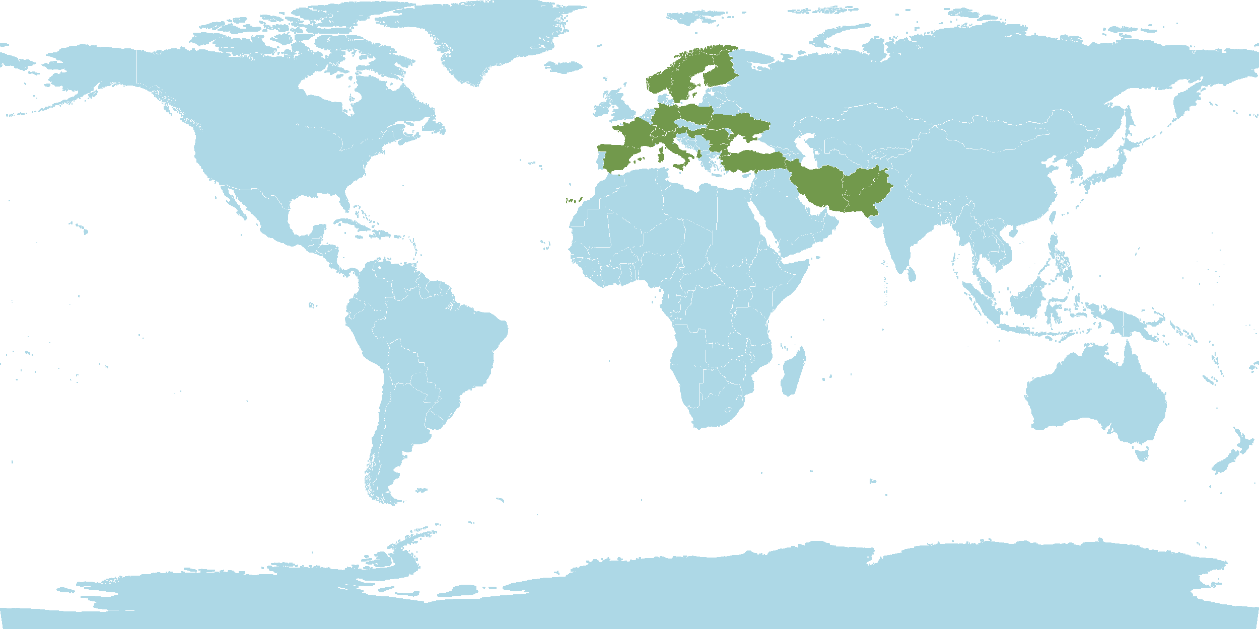 - Native : Afghanistan, Albania, Austria, Bulgaria, Czechoslovakia, Finland, France, Germany, Hungary, Iran, Italy, Krym, North Caucasus, Norway, Pakistan, Poland, Romania, South European Russia, Spain, Sweden, Switzerland, Transcaucasus, Turkey, Ukraine, Yugoslavia