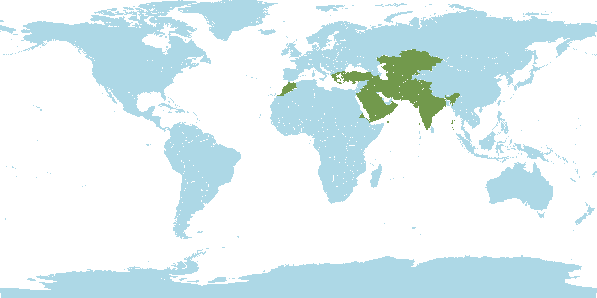 - Native : Afghanistan, Cyprus, East Aegean Islands, Eritrea, Greece, India, Inner Mongolia, Iran, Iraq, Kazakhstan, Kirgizstan, Kriti, Lebanon-Syria, Morocco, Oman, Pakistan, Palestine, Saudi Arabia, Tadzhikistan, Transcaucasus, Turkey, Turkmenistan, Uzbekistan, Xi