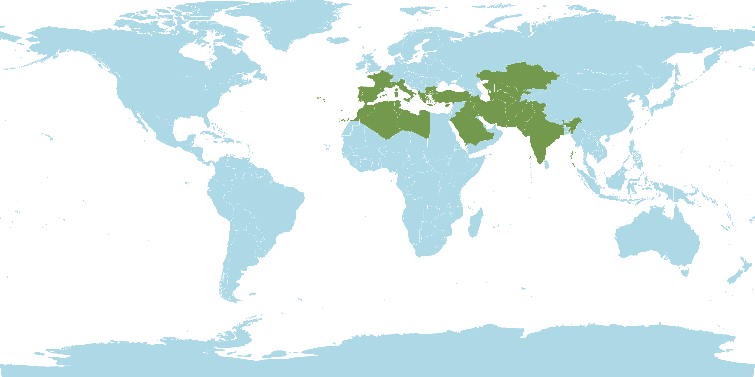- Native : Afghanistan, Albania, Algeria, Baleares, Bulgaria, Canary Islands, Corse, Cyprus, East Aegean Islands, France, Greece, India, Iran, Iraq, Italy, Kazakhstan, Kirgizstan, Kriti, Krym, Lebanon-Syria, Libya, Madeira, Morocco, North Caucasus, Pakistan, Palesti