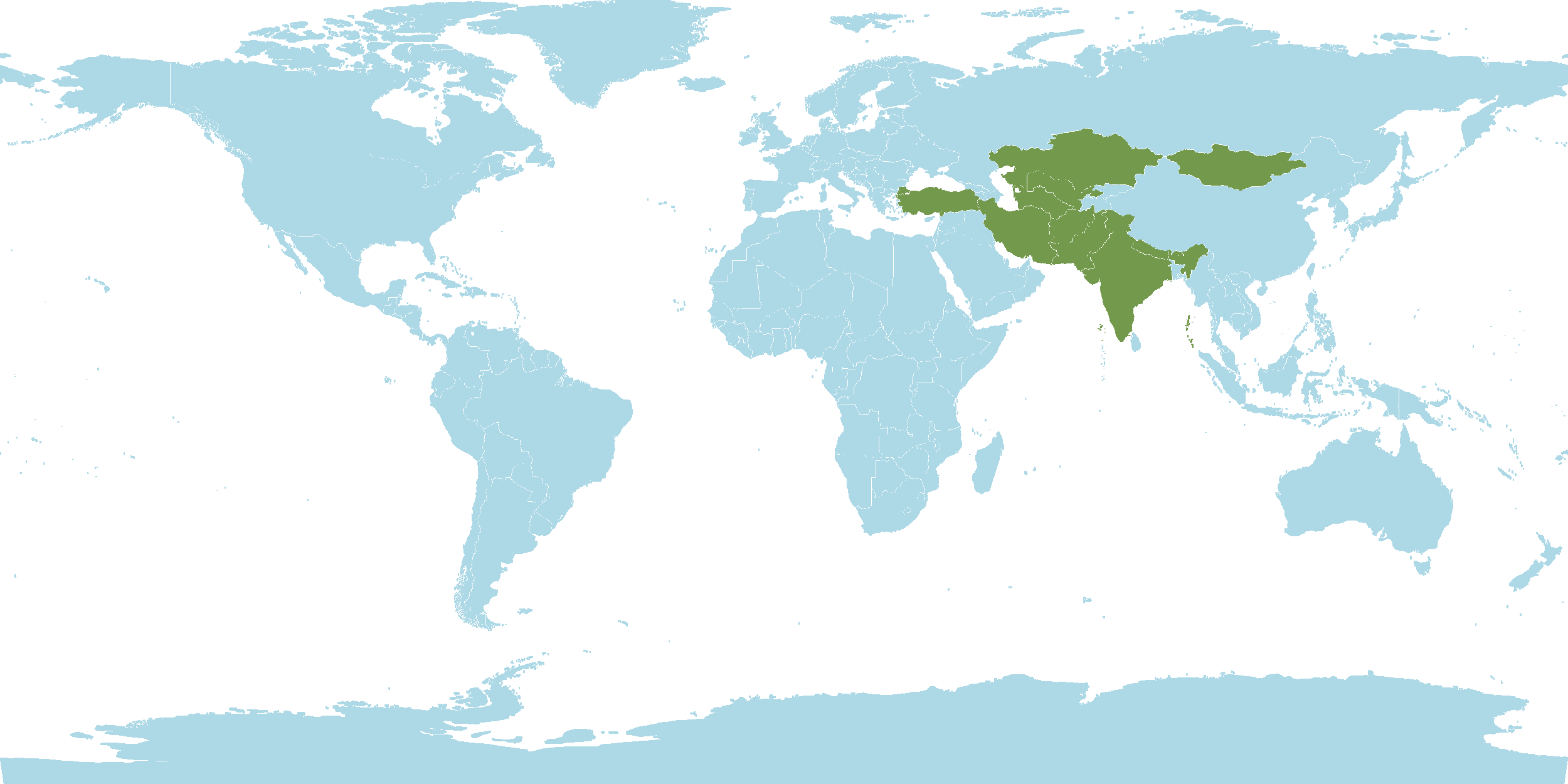 - World Distribution : Afghanistan, Bhutan, California, India, Iran, Kazakhstan, Kirgizstan, Mongolia, Nepal, North Caucasus, Pakistan, Tadzhikistan, Tibet, Transcaucasus, Turkey, Turkmenistan, Uzbekistan, Xinjiang
