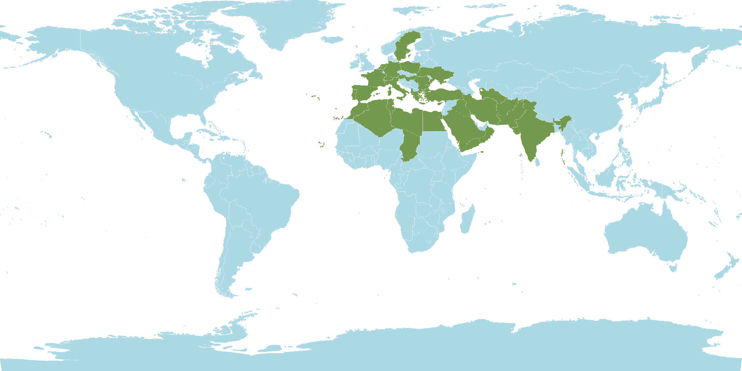 - Native : Afghanistan, Albania, Algeria, Austria, Azores, Baleares, Baltic States, Belgium, Bulgaria, Canary Islands, Cape Verde, Chad, Corse, Cyprus, Czechoslovakia, East Aegean Islands, Egypt, France, Germany, Greece, Gulf States, Hungary, India, Iran, Iraq, Ital