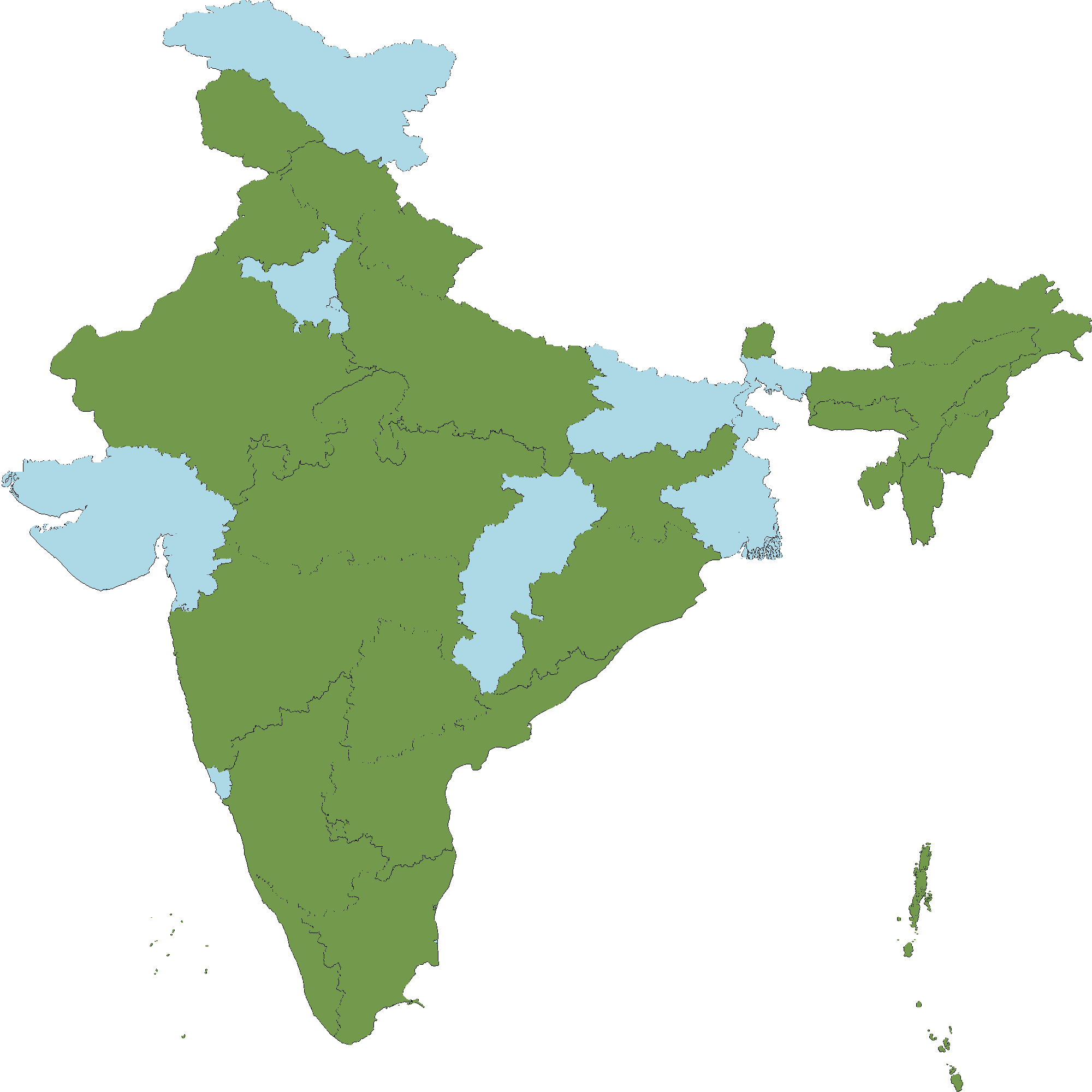 - Andhra Pradesh : Anantapur district, Chittoor district, Kadapa district, East Godavari district, Guntur district, Krishna district, Kurnool district, Nellore district, Prakasam district, Srikakulam district, Vishakapatnam district, Vizianagaram district, West Godavari district