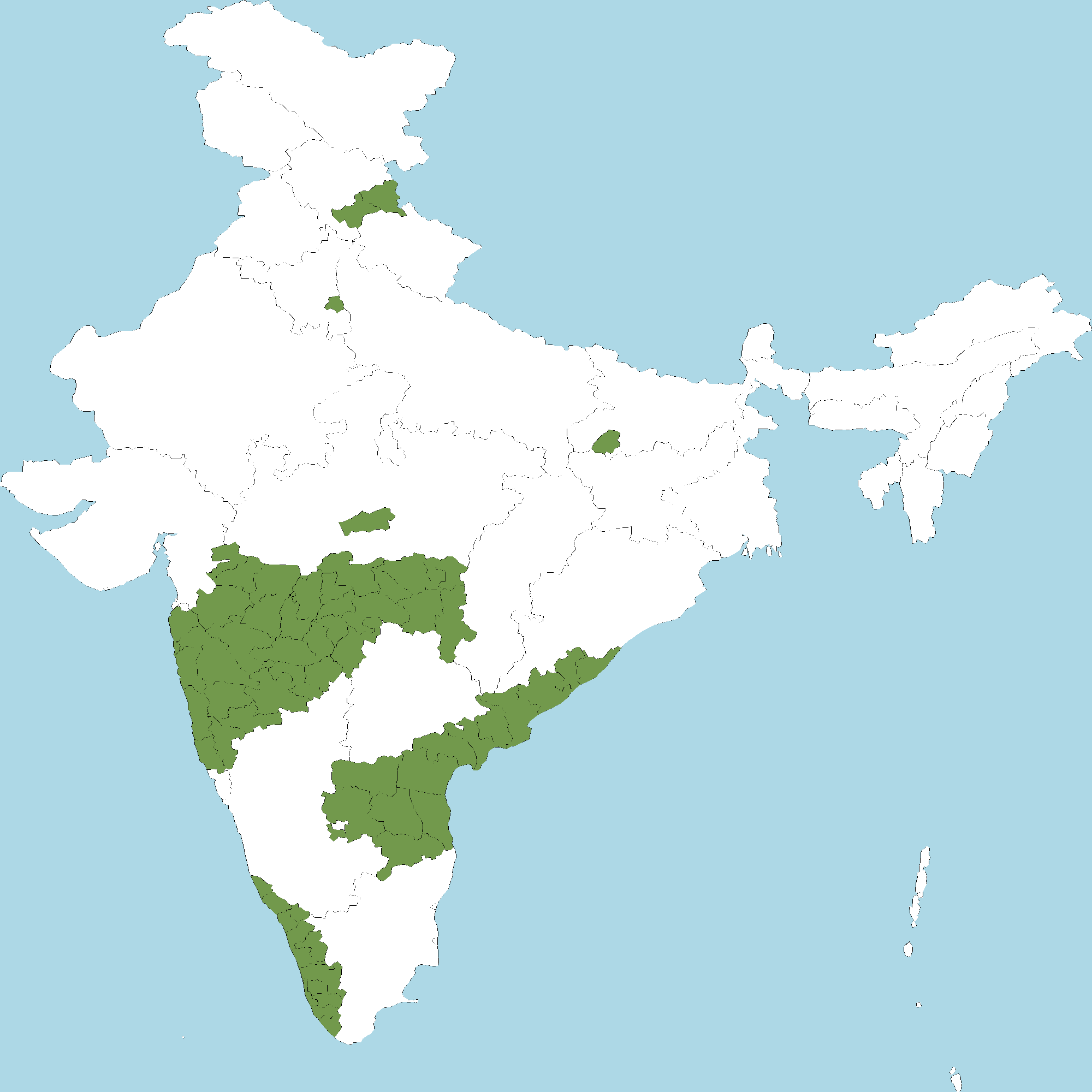 - Andhra Pradesh : Throughout Andhra Pradesh