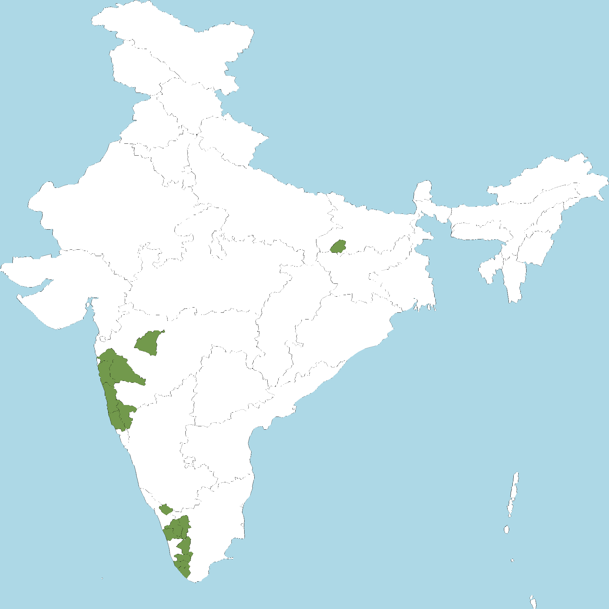 - Kerala : Wayanad district, Palakkad district, Thrissur district, Idukki district, Pathanamthitta district, Kollam district, Thiruvananthapuram district