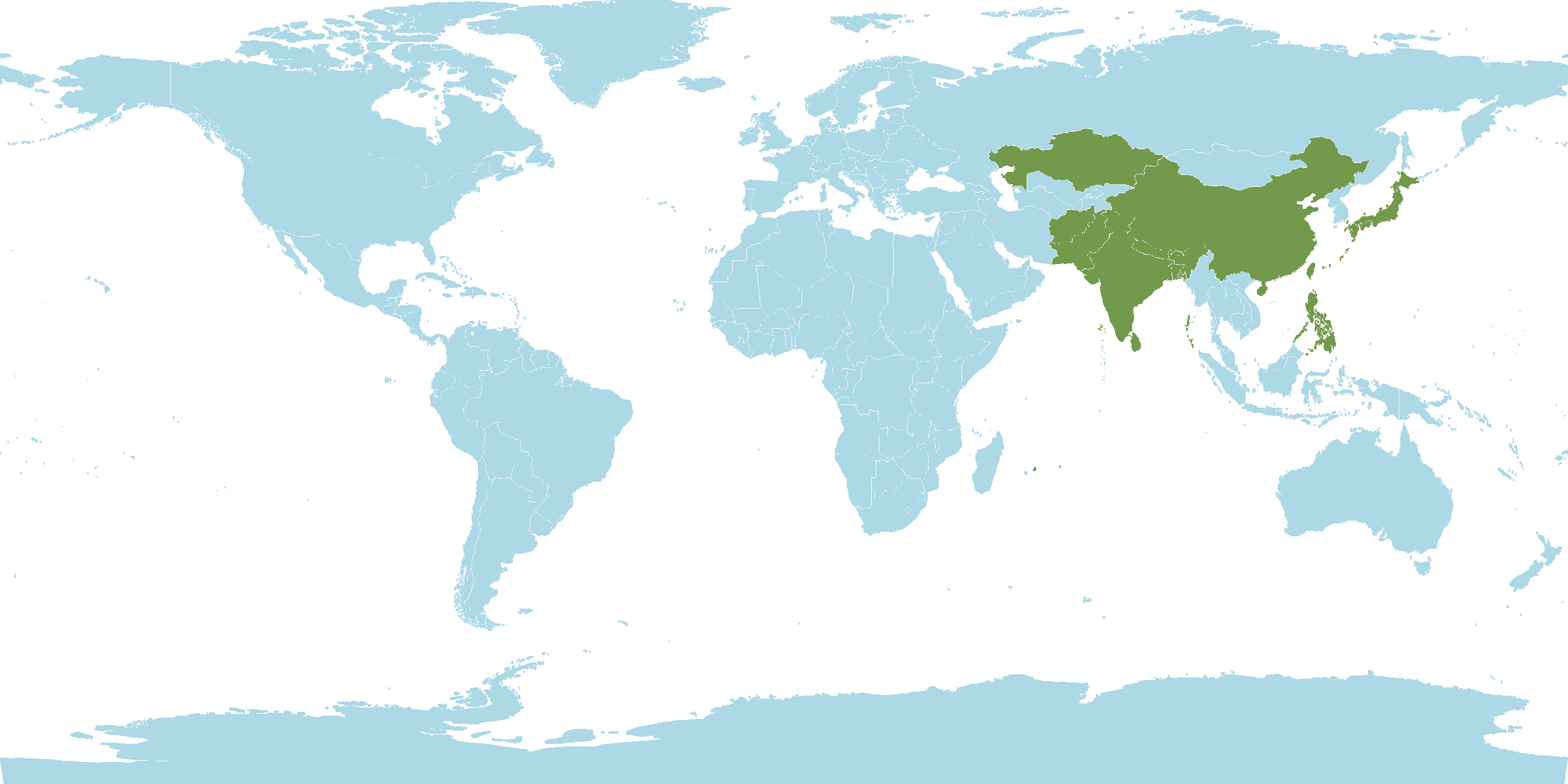 - Native : Afghanistan, Bangladesh, Bhutan, China, Hainan, India, Inner Mongolia, Japan, Kazakhstan, Khabarovsk, Kirgizstan, Korea, Manchuria, Nansei-shoto, Nepal, Ogasawara-shoto, Pakistan, Philippines, Primorye, Sri Lanka, Tadzhikistan, Taiwan, Turk