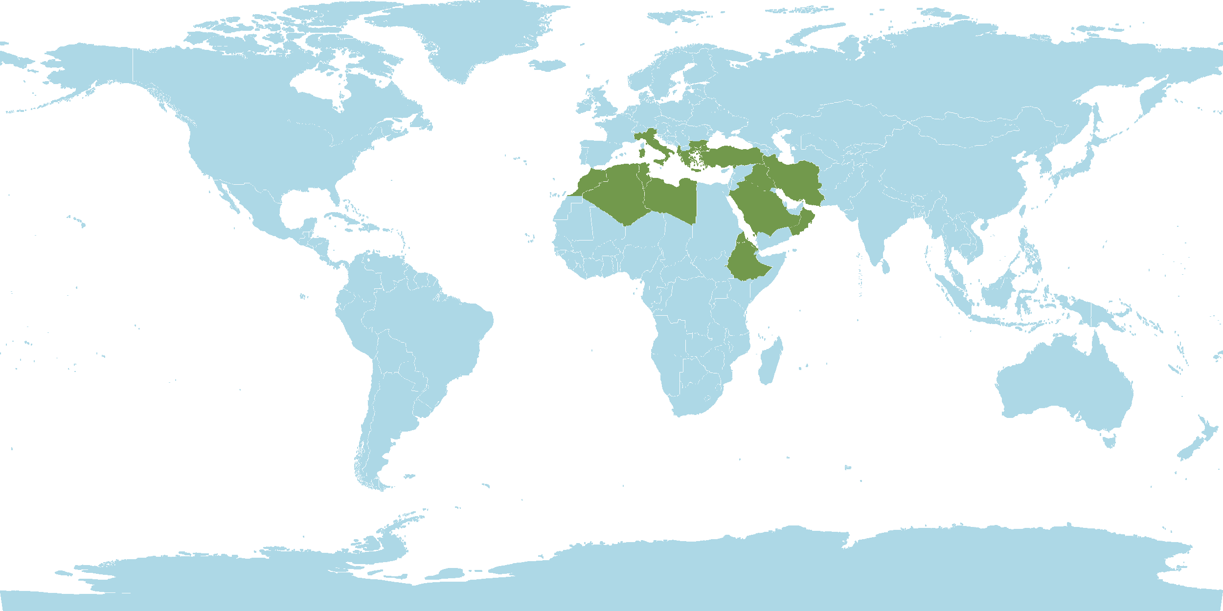 - Native : Albania, Algeria, Bulgaria, Eritrea, Ethiopia, Greece, Iran, Iraq, Italy, Kriti, Lebanon-Syria, Libya, Morocco, North Caucasus, Oman, Palestine, Saudi Arabia, Transcaucasus, Tunisia, Turkey, Yugoslavia
