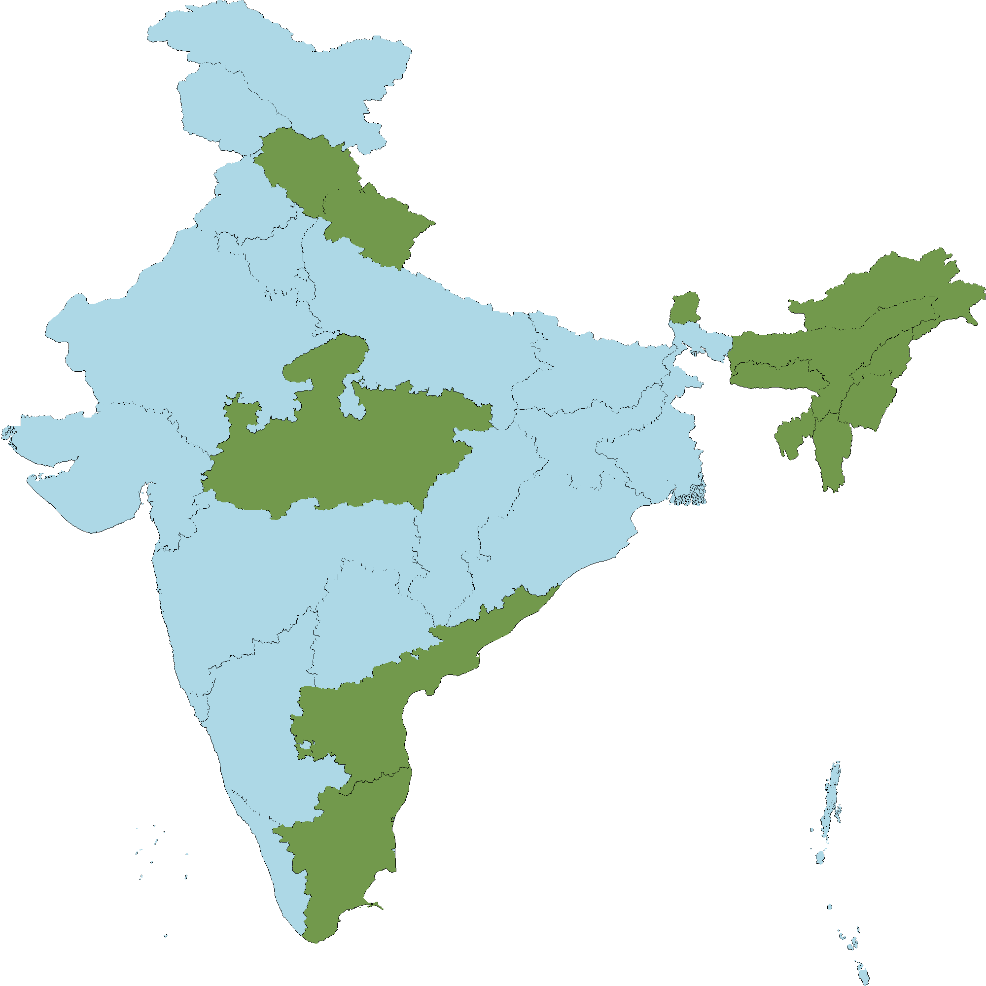 - Tamil Nadu : Coimbatore district, Dindigul district, Dharmapuri district, Kanchipuram (Changalpattu-CGP) district, Karur district, Krishnagiri district, Madurai district, Namakkal district, Pudukkottai district, Sivaganga district, Salem district, Tiruchirapalli district, Tiruvannamalai district, Villipuram district, Vellore district