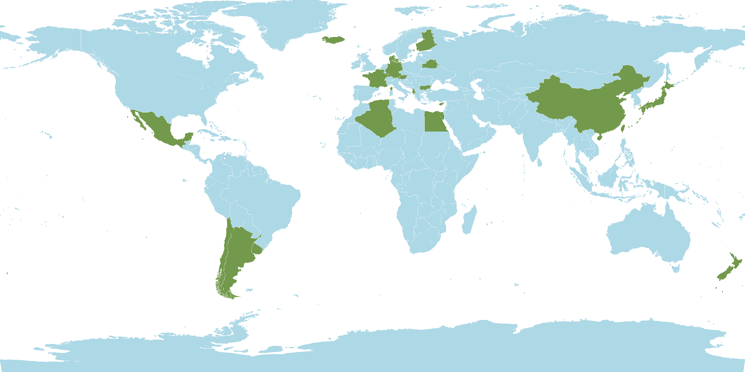 - World Distribution : Alabama, Alaska, Alaska, Alberta, Amsterdam-St.Paul Is, Argentina, Arizona, Arkansas, Brazil South, British Columbia, California, Cape Provinces, Chatham Is., Chile, Colorado, Connecticut, Crozet Is., Delaware, District of Columbia, Falkland Is., Føroyar, Greenland, Greenland, Hawaii, Iceland, Idaho, Illinois, Indiana, Iowa, Japan, Juan Fernández Is., Kansas, Kentucky, Kermadec Is., Korea, Louisiana, Maine, Maryland, Massachusetts, Mexican Pacific Is., Mexico, Michigan, Missouri, Montana, Nebraska, Nevada, New Brunswick, New Hampshire, New Jersey, New Mexico, New South Wales, New York, New Zealand, Newfoundland, Norfolk Is., North Carolina, North Dakota, Northern Provinces, Northwest Territorie, Nova Scotia, Ohio, Oklahoma, Ontario, Oregon, Pennsylvania, Queensland, Québec, Rhode I., South Australia, South Carolina, South Dakota, St.Helena, Taiwan, Tasmania, Tennessee, Texas, Uruguay, Utah, Victoria, Virginia, Washington, Western Australia, Wisconsin, Wyoming, Yukon