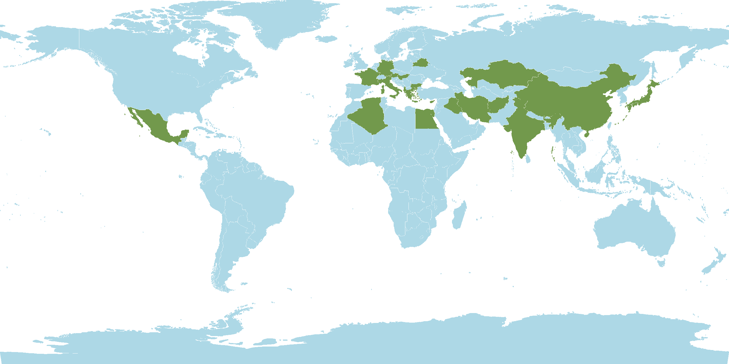 - Native : Afghanistan, Albania, Algeria, Altay, Austria, Bulgaria, China, Cyprus, Czechoslovakia, East Aegean Is., European Russia, Egypt, France, Germany, Greece, Gulf States, Hungary, India, Inner Mongolia, Iran, Iraq, Italy, Japan, Kazakhstan, Kirgizstan, Korea,