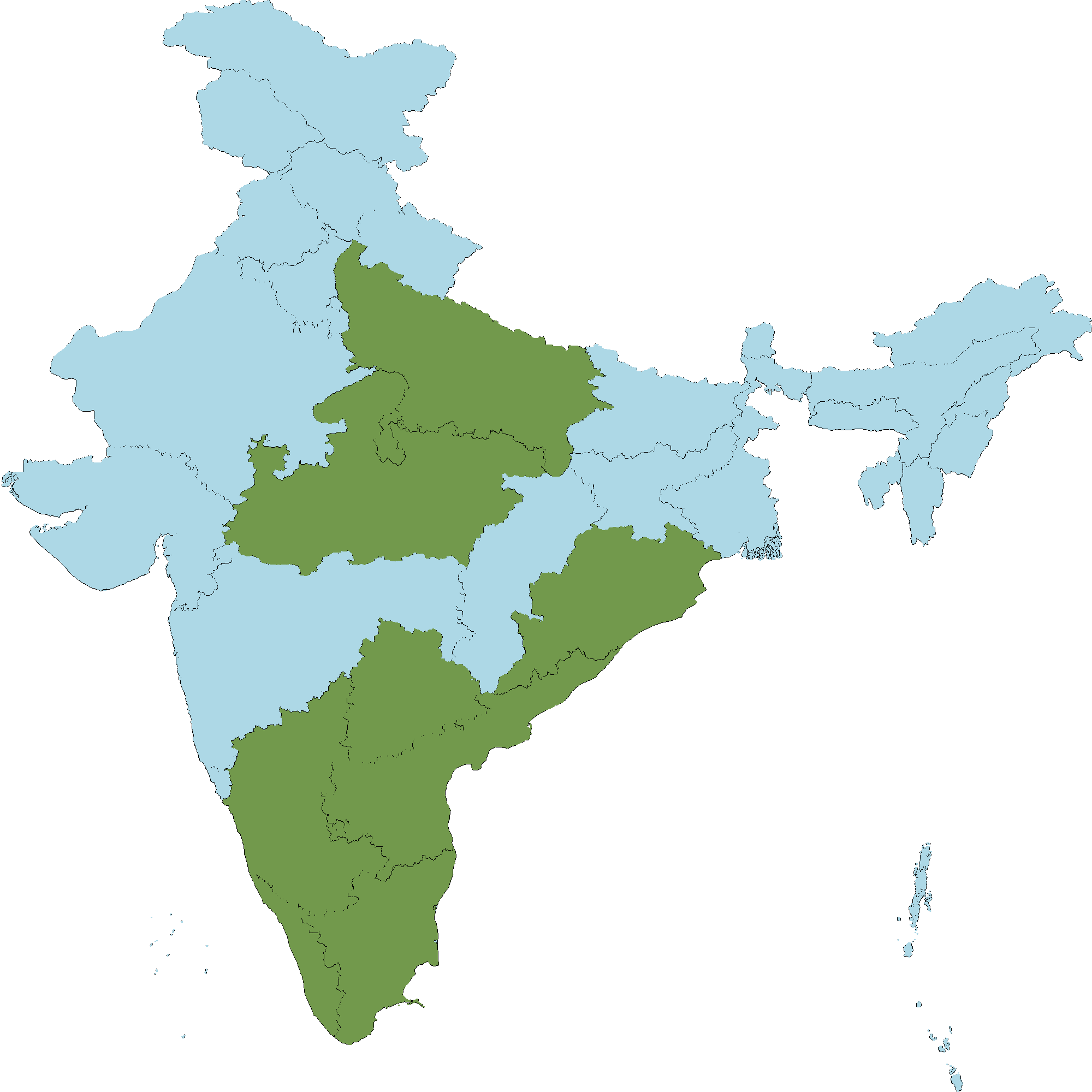 - Andhra Pradesh : Anantapur district, Chittoor district, Y.S.R. Kadapa district, East Godavari district, Guntur district, Krishna district, Kurnool district, S.P.S. Nellore district, Prakasam district, Srikakulam district, Visakhapatnam district, Vizianagaram district, West Godavari district
