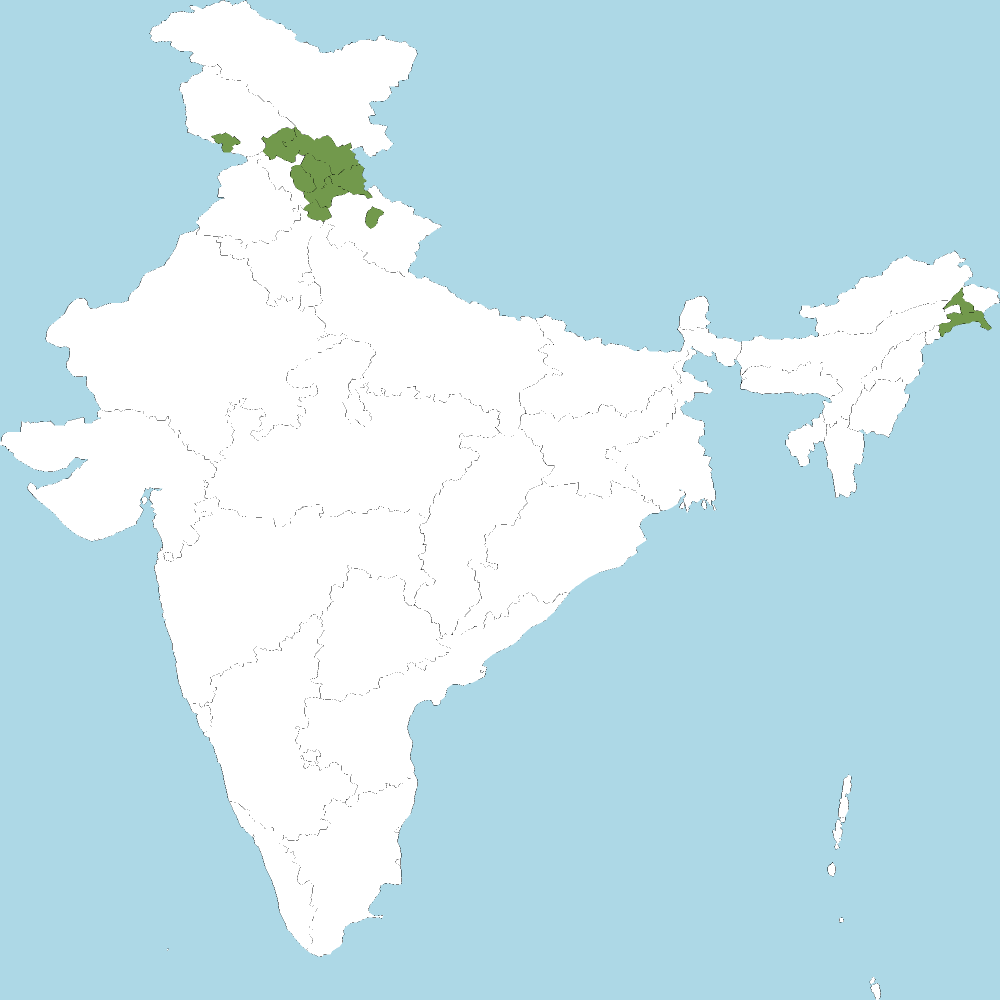• Himachal Pradesh : Chamba district, Kinnaur district, Kullu district, Lahaul and Spiti district, Mandi district, Shimla district, Sirmaur district