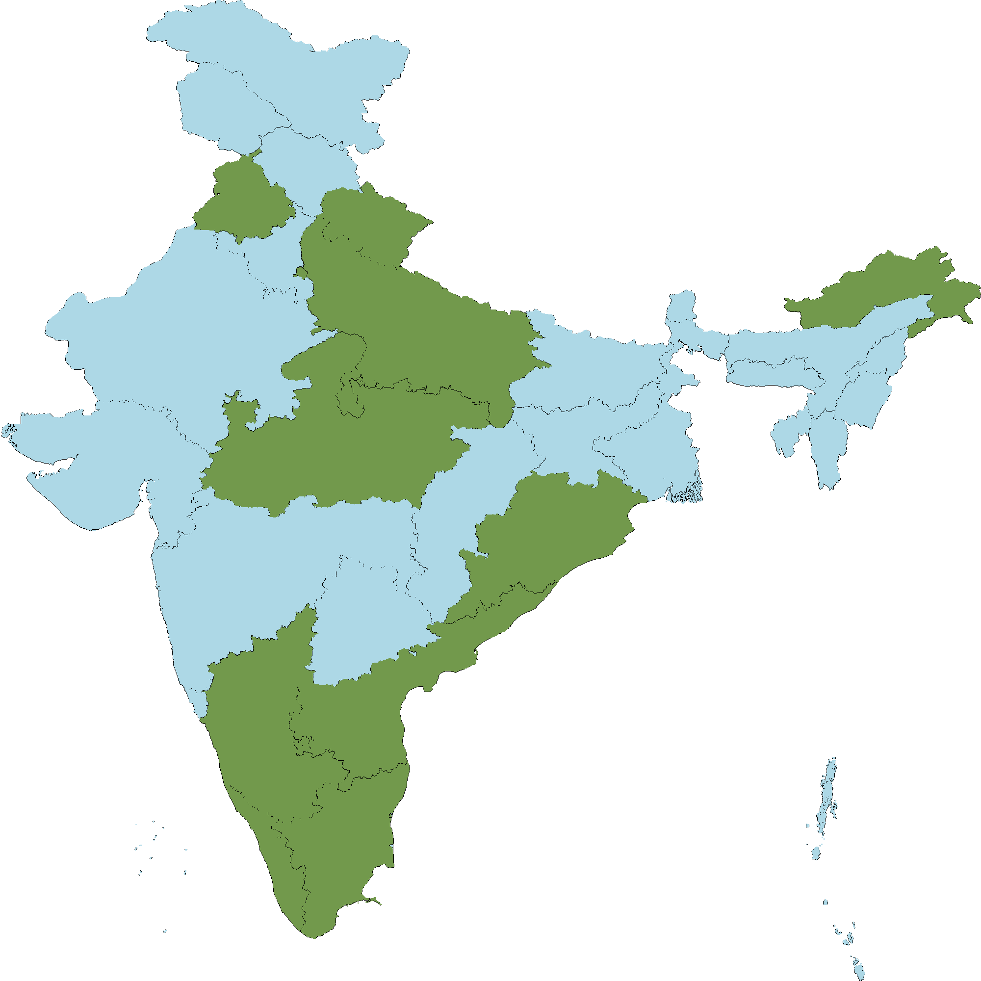 - Kerala : Wayanad district, Malappuram district, Palakkad district, Idukki district, Kollam district