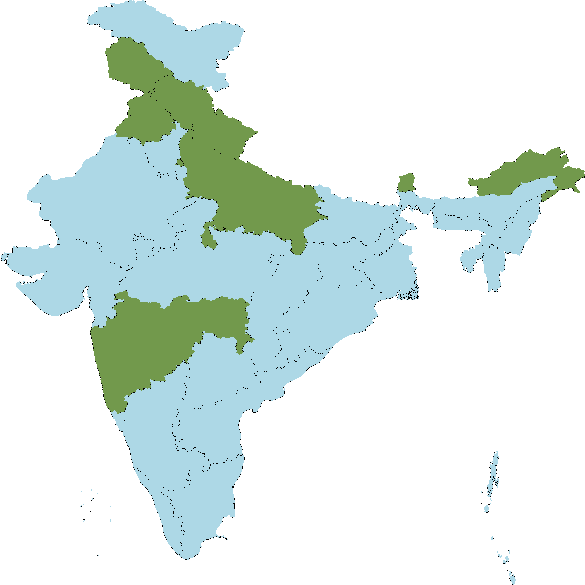 - Maharashtra : Akola district, Amravati district, Aurangabad district, Dhule district, Nashik district, Pune district, Thane district