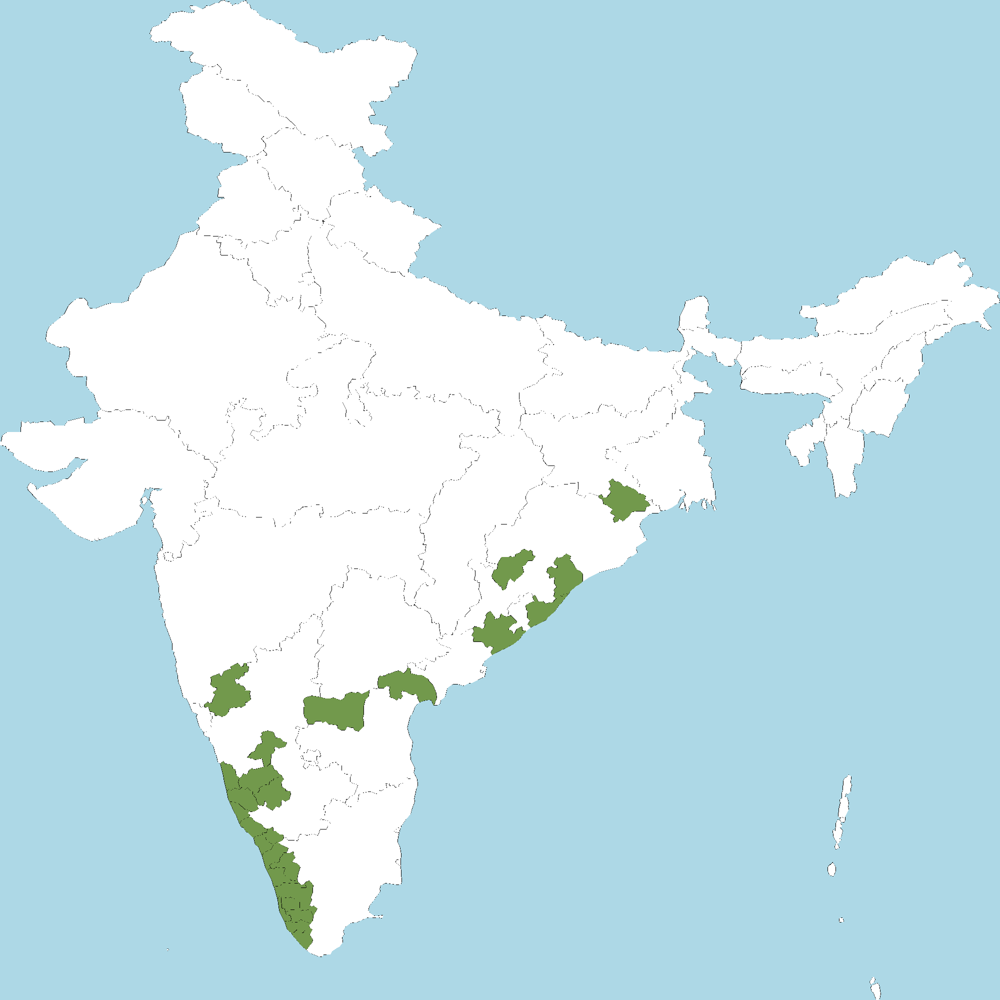 - Kerala : All districts of Kerala