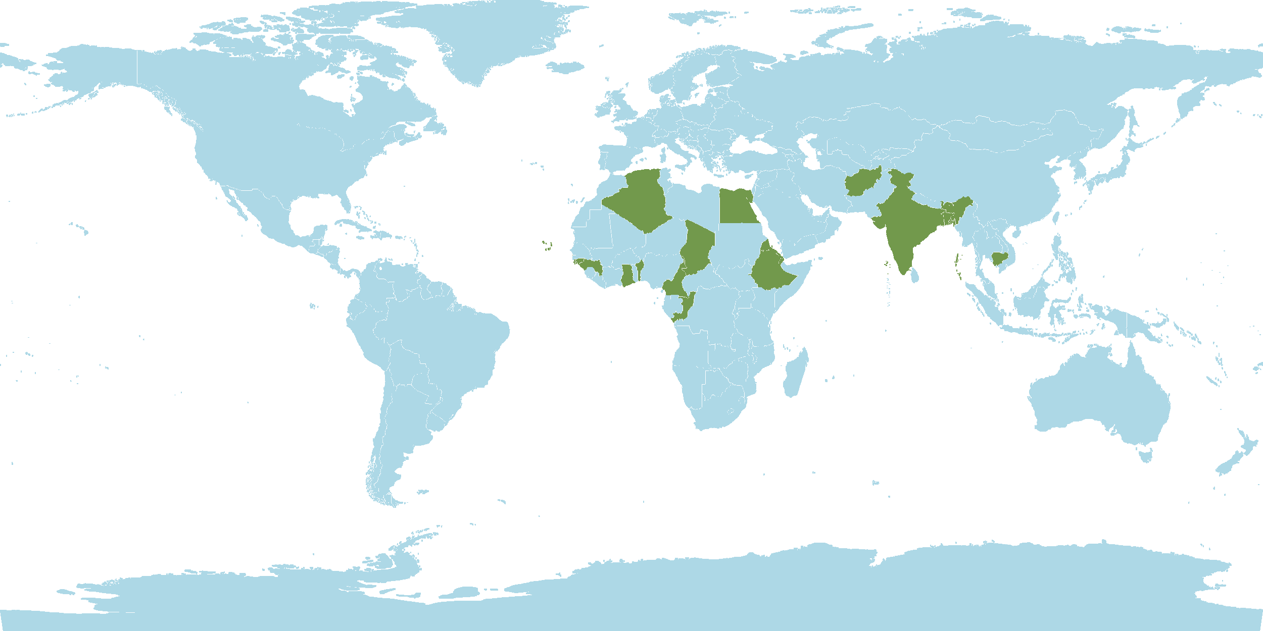 - Native : Afghanistan, Algeria, Bangladesh, Benin, Burkina, Cambodia, Cameroon, Canary Islands, Cape Verde, Central African Repu, Chad, Congo, Djibouti, Bhutan, Egypt, Eritrea, Ethiopia, Gambia, Ghana, Guinea, Guinea-Bissau, Gulf of Guinea Islands, Gulf States, Ind