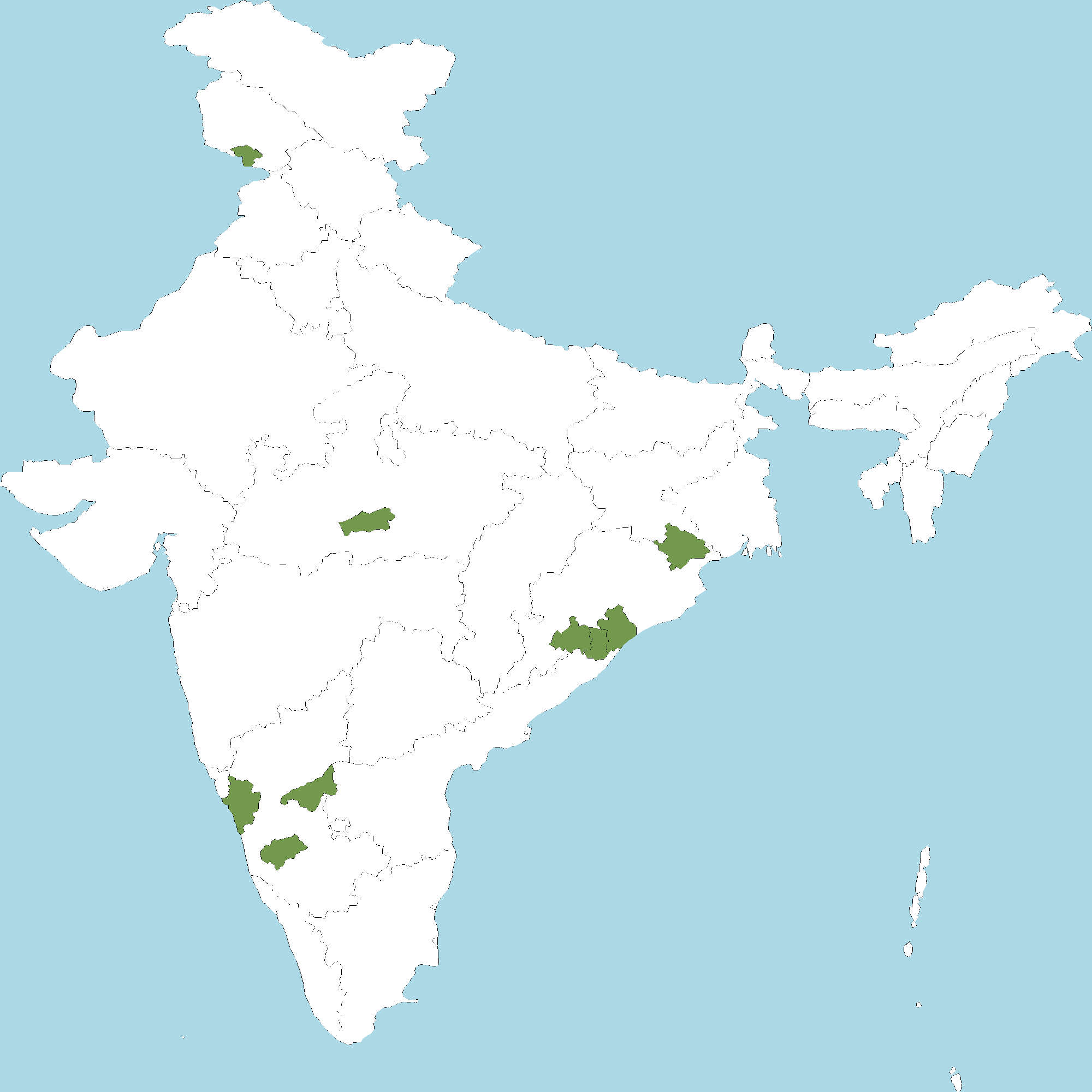 • Odisha : Ganjam district, Mayurbhanj district, Gajapati district, Rayagada district