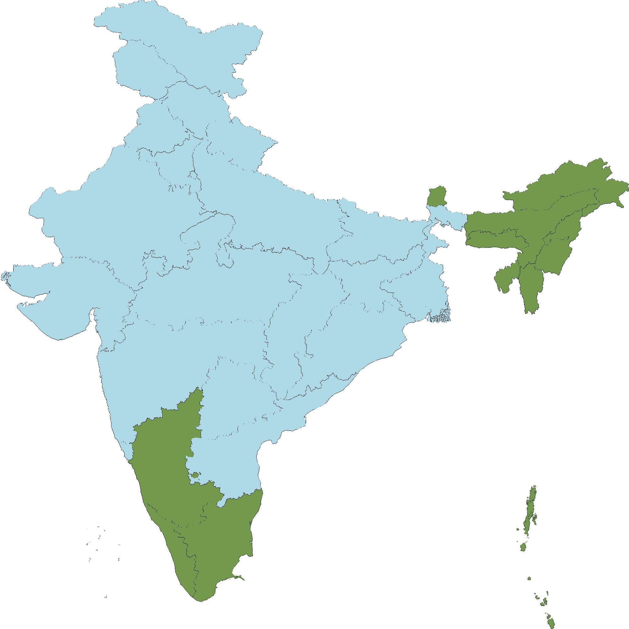 - Andaman and Nicobar Islands : North and Middle Andaman,South Andaman
