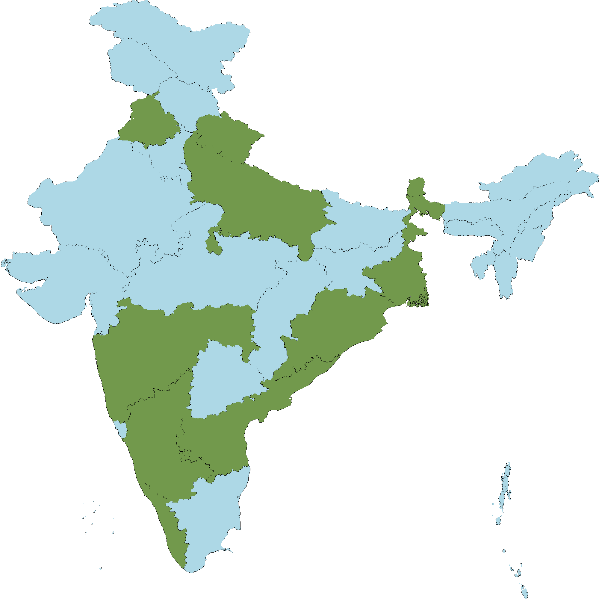 - Andhra Pradesh : Kurnool district, East Godavari district, West Godavari district, Anantapur district, Guntur district, Srikakulam district