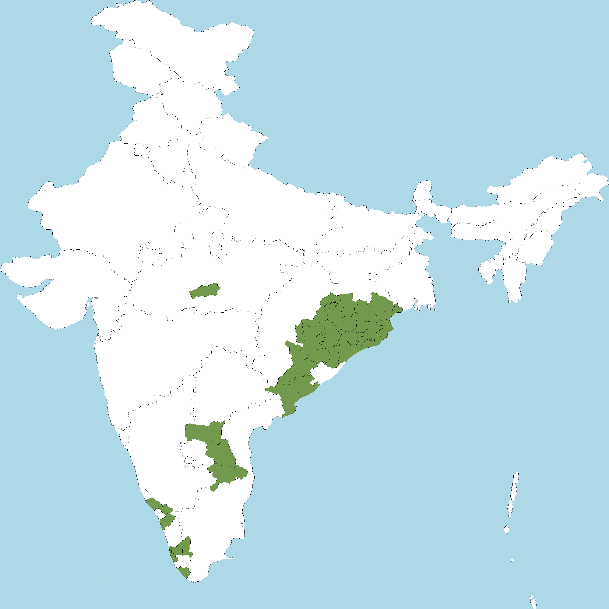 - Andhra Pradesh : Chittoor district, Y.S.R. Kadapa district, East Godavari district, Kurnool district, Visakhapatnam district